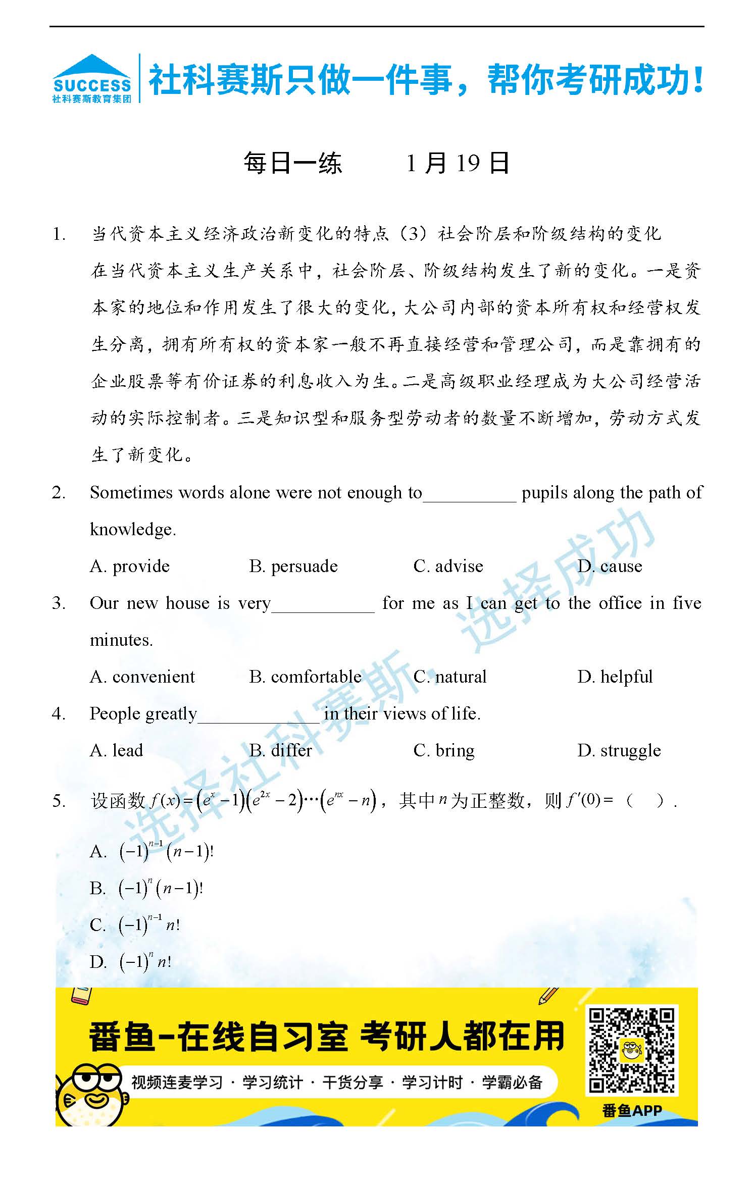導讀:考研是一場持久戰,保持良好的學習習慣,是能確保復習高效的關鍵。今天社科賽斯MBA備考網小編整理了“2022管理類聯1月19日每日一練及答案”的內容,希望能對廣大考生有所幫助。