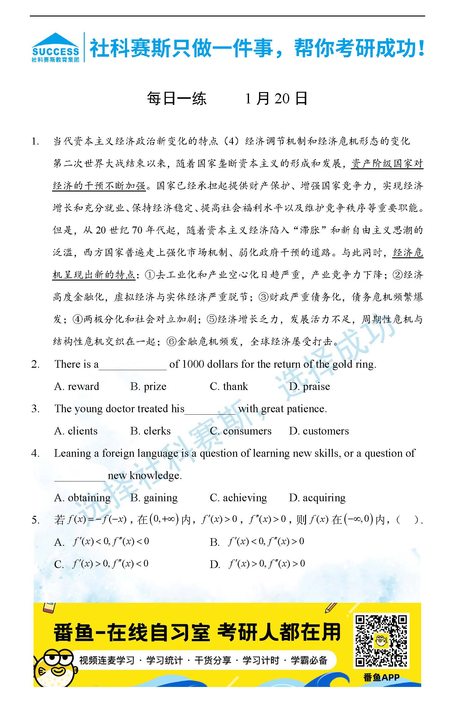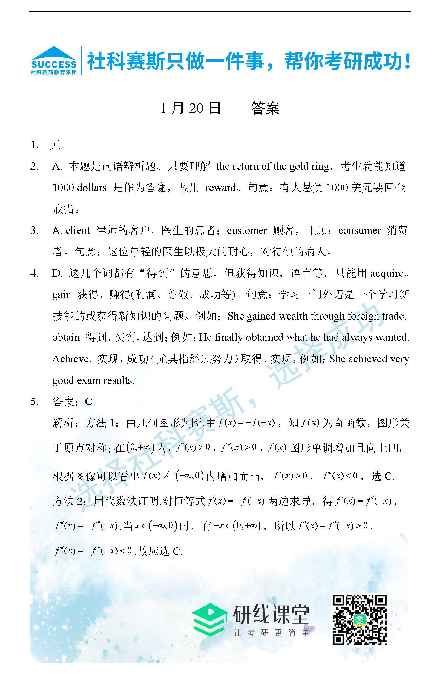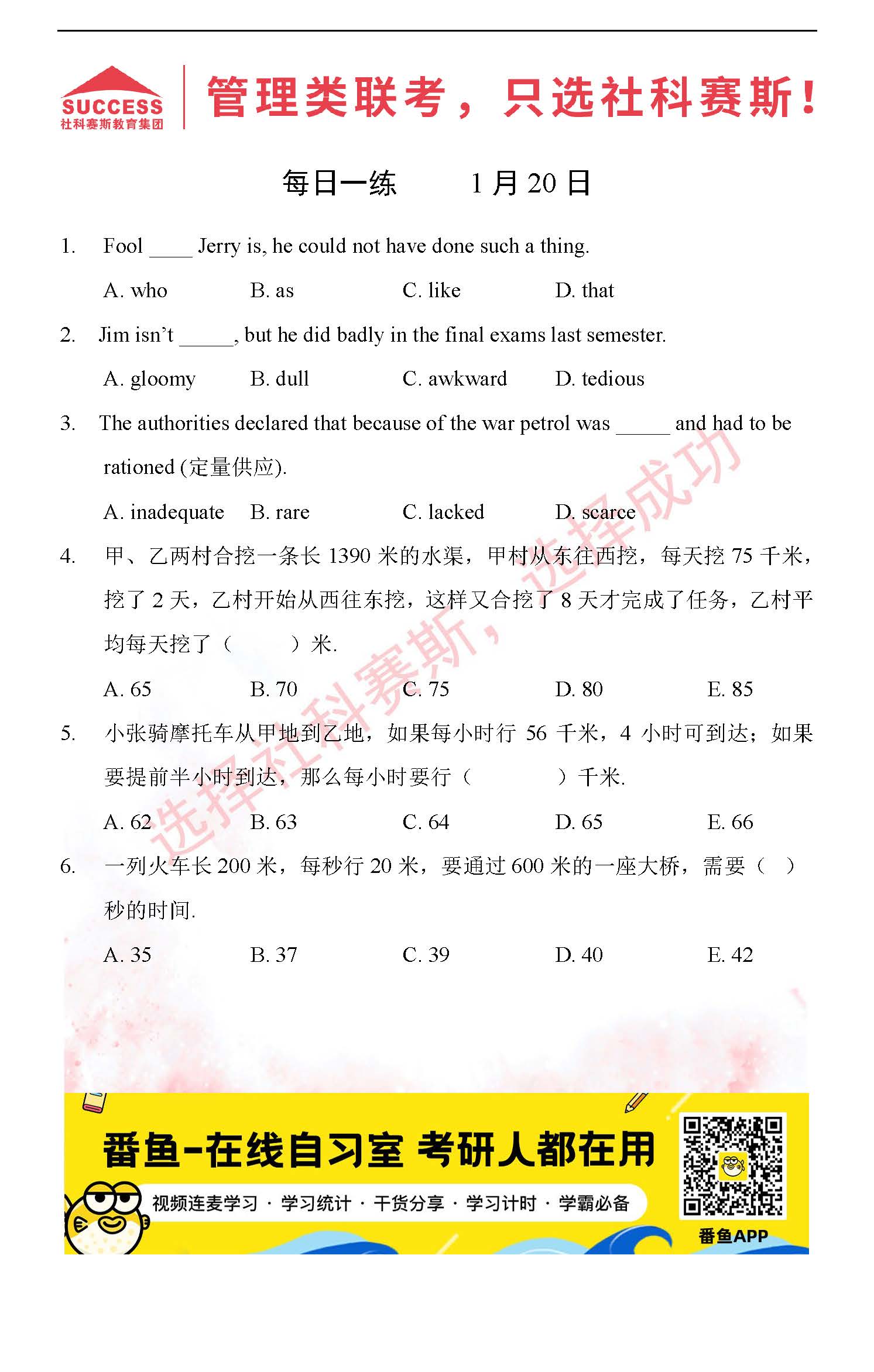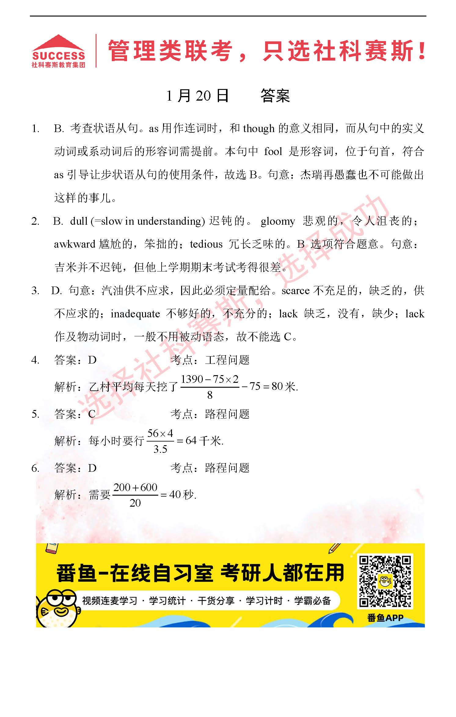 以上就是社科賽斯MBA備考網小編為大家整理2022管理類聯考1月20日每日一練及答案的全部內容,希望各位考生堅持利用起來,更多每日一練內容請持續關注MBA備考網管理類聯考每日一練。