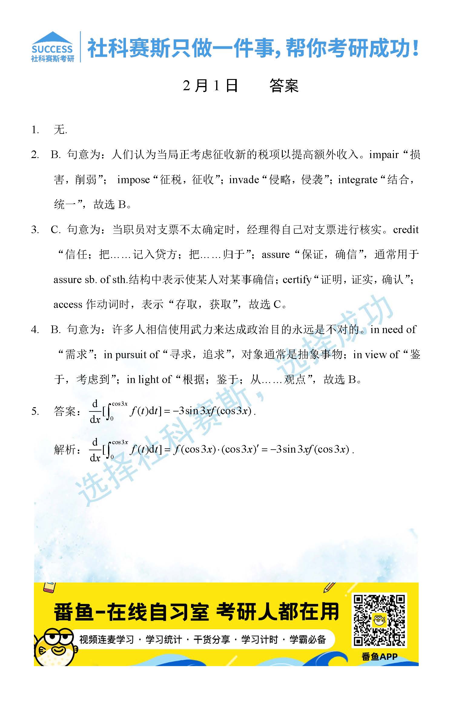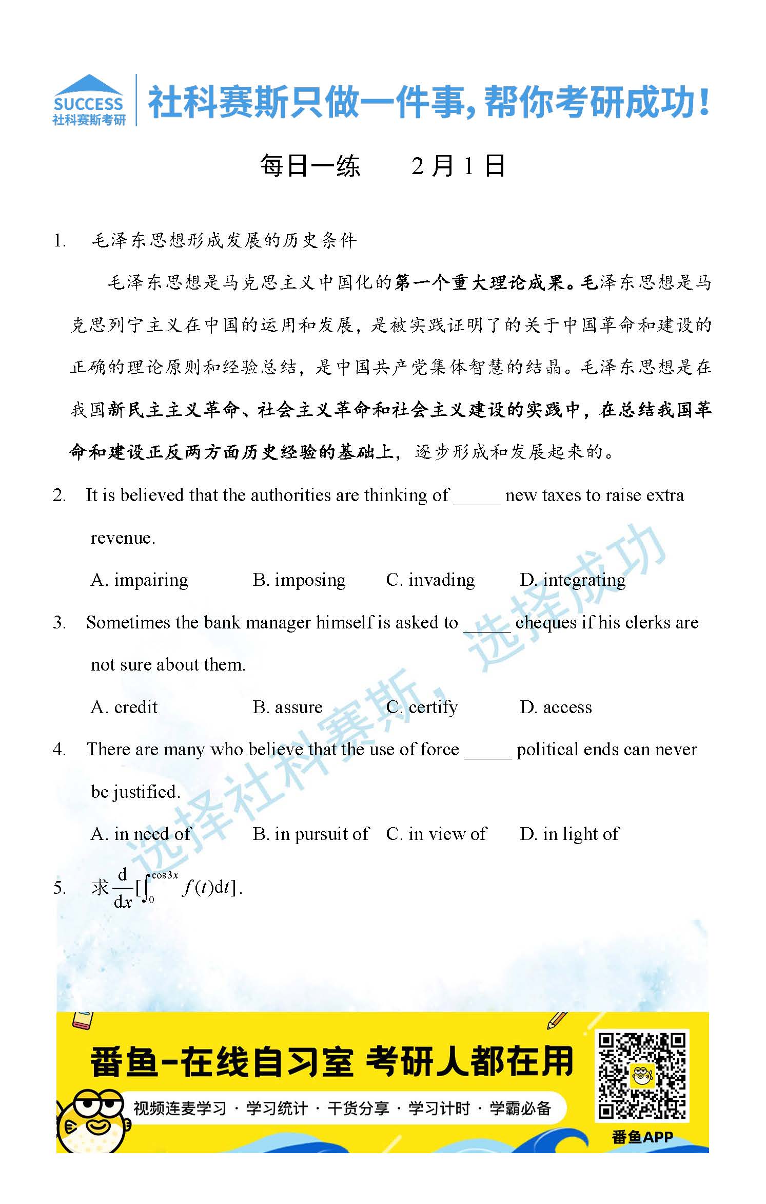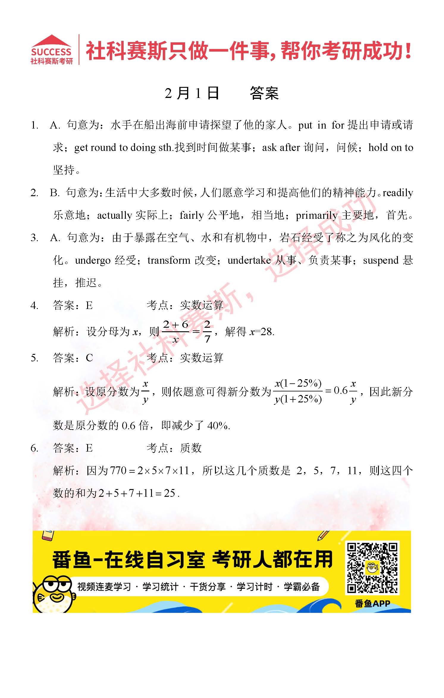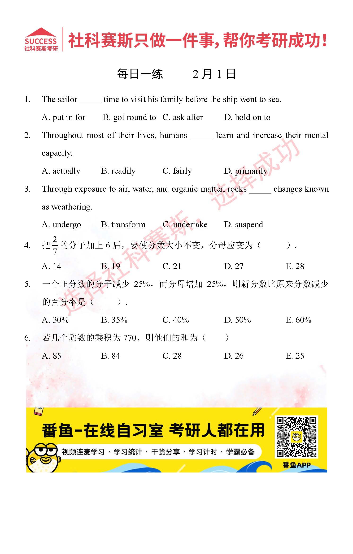 導(dǎo)讀:考研是一場(chǎng)持久戰(zhàn),保持良好的學(xué)習(xí)習(xí)慣,是能確保復(fù)習(xí)高效的關(guān)鍵。今天社科賽斯MBA備考網(wǎng)小編整理了“2022管理類聯(lián)2月1日每日一練及答案”的內(nèi)容,希望能對(duì)廣大考生有所幫助。