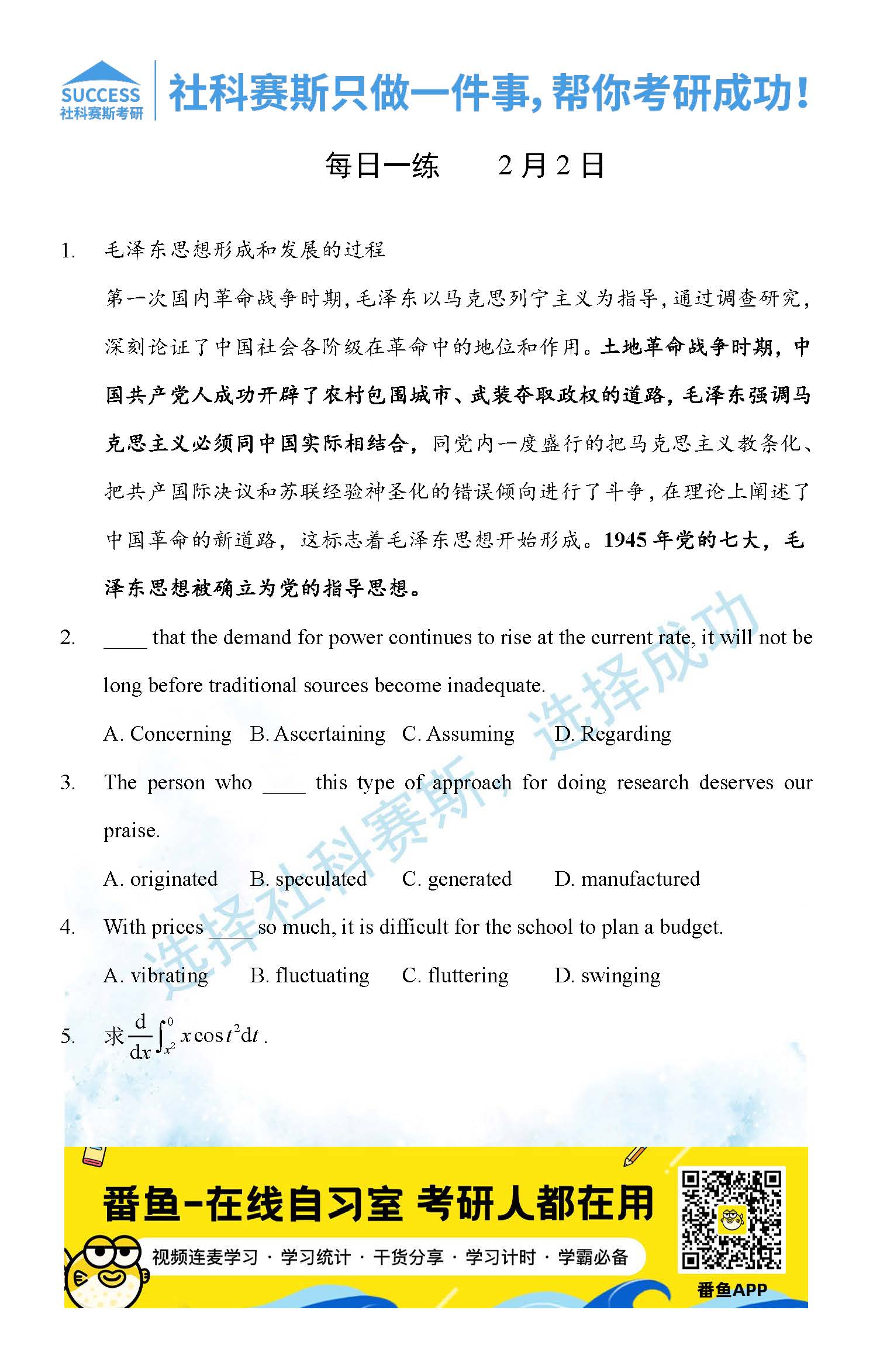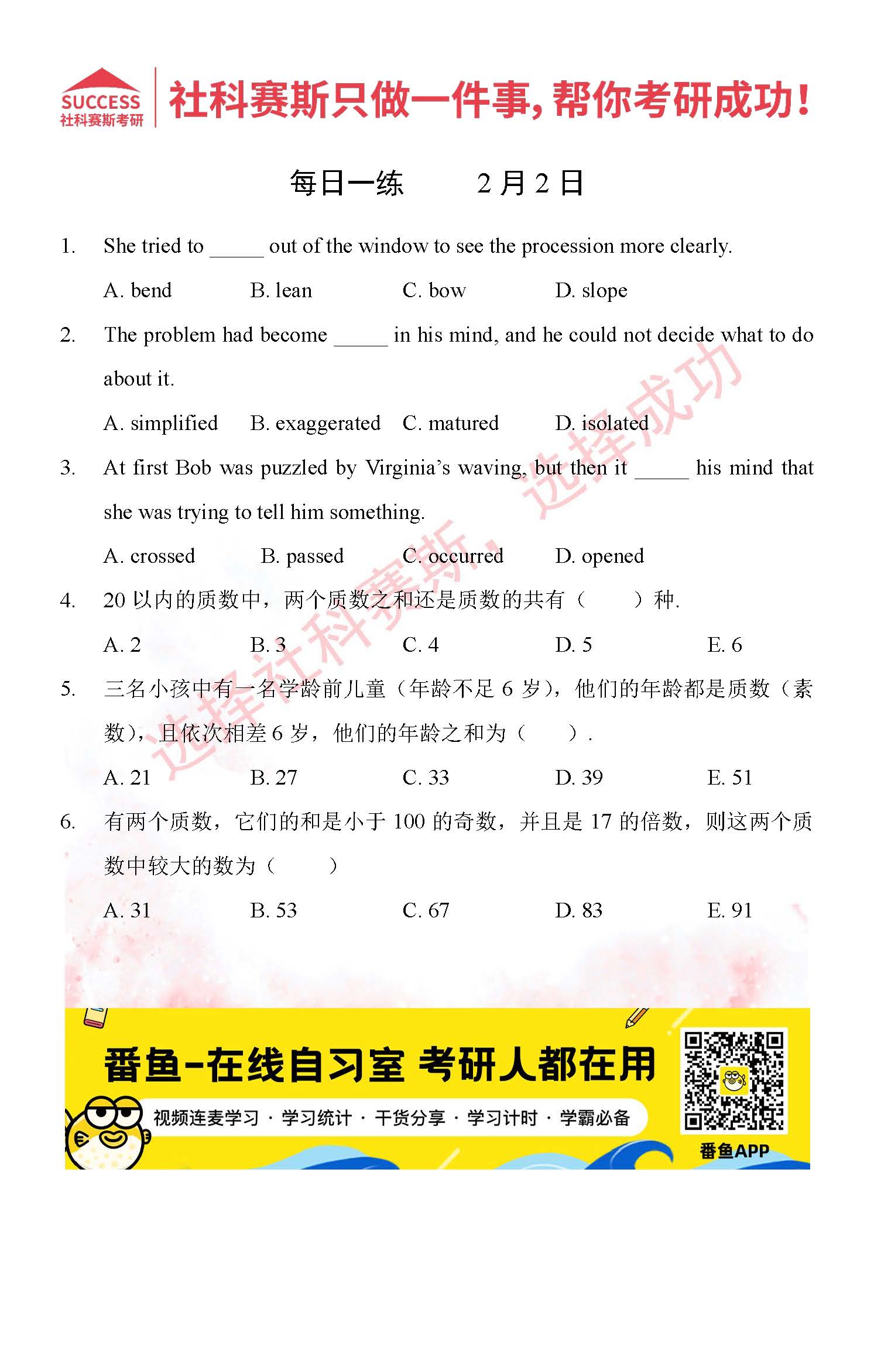 導讀:考研是一場持久戰,保持良好的學習習慣,是能確保復習高效的關鍵。今天社科賽斯MBA備考網小編整理了“2022管理類聯2月2日每日一練及答案”的內容,希望能對廣大考生有所幫助。