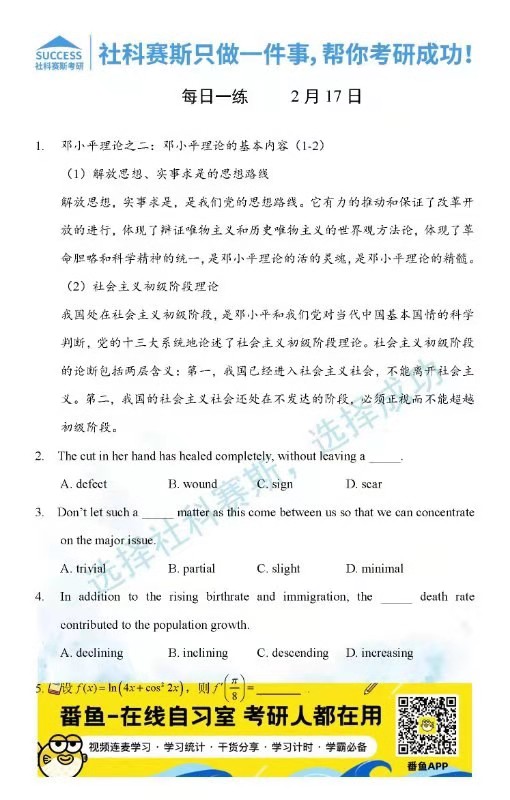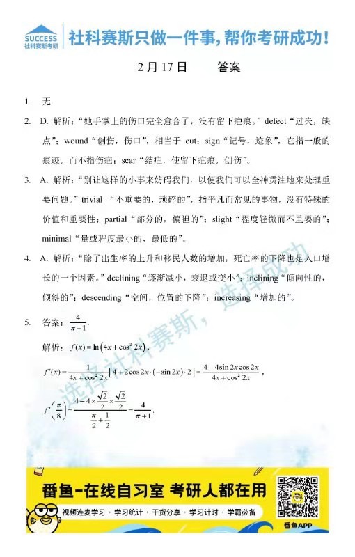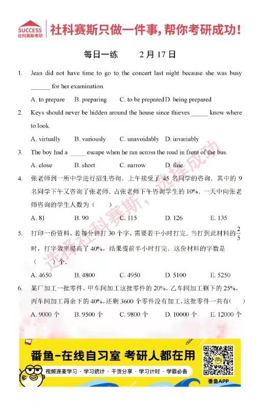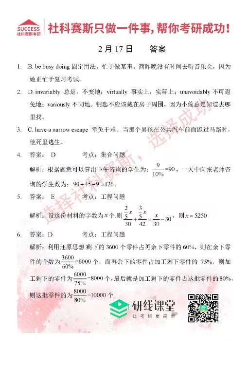 導讀:考研是一場持久戰,保持良好的學習習慣,是能確保復習高效的關鍵。今天社科賽斯MBA備考網小編整理了“2022管理類聯2月17日每日一練及答案”的內容,希望能對廣大考生有所幫助。