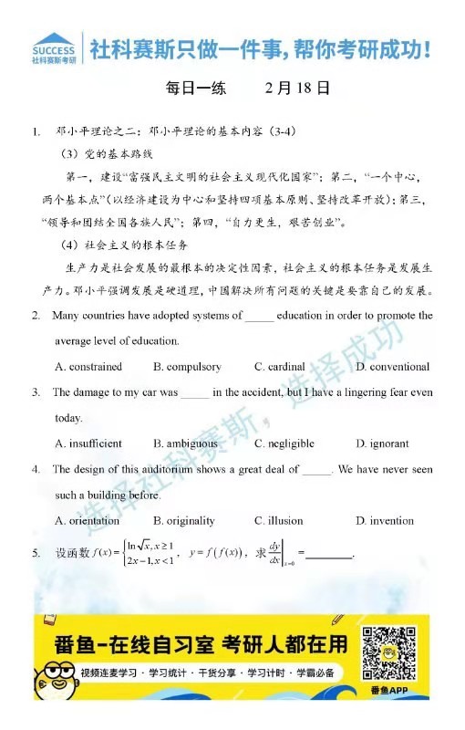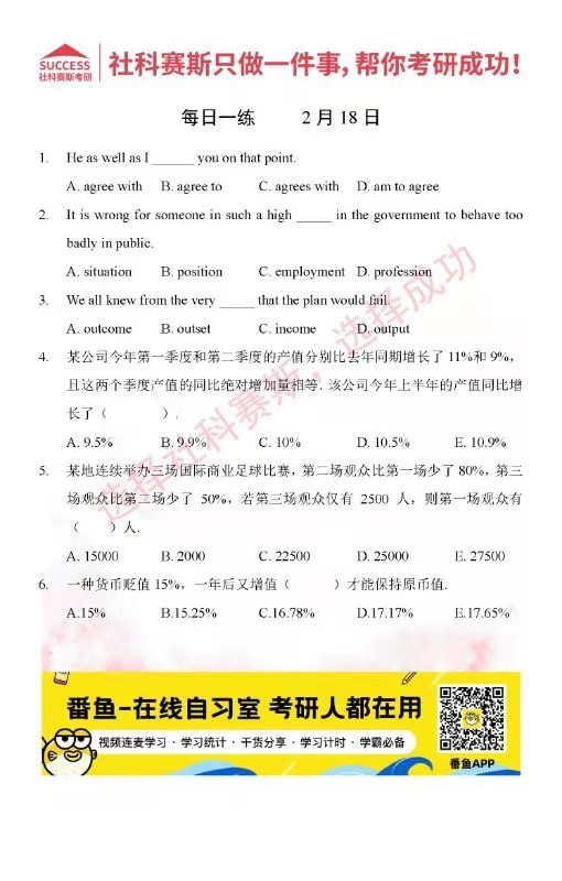 導(dǎo)讀:考研是一場(chǎng)持久戰(zhàn),保持良好的學(xué)習(xí)習(xí)慣,是能確保復(fù)習(xí)高效的關(guān)鍵。今天社科賽斯MBA備考網(wǎng)小編整理了“2022管理類聯(lián)2月18日每日一練及答案”的內(nèi)容,希望能對(duì)廣大考生有所幫助。