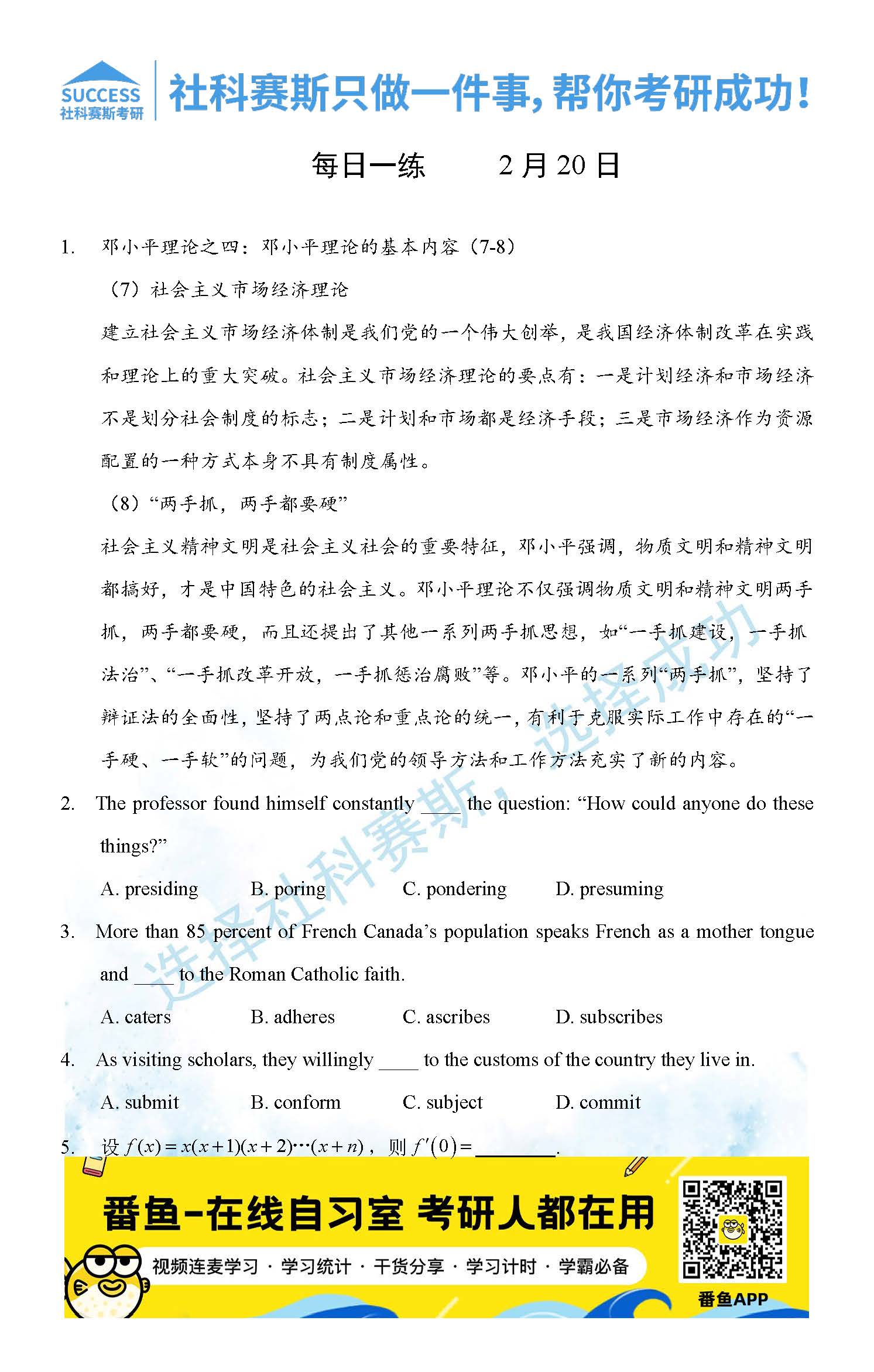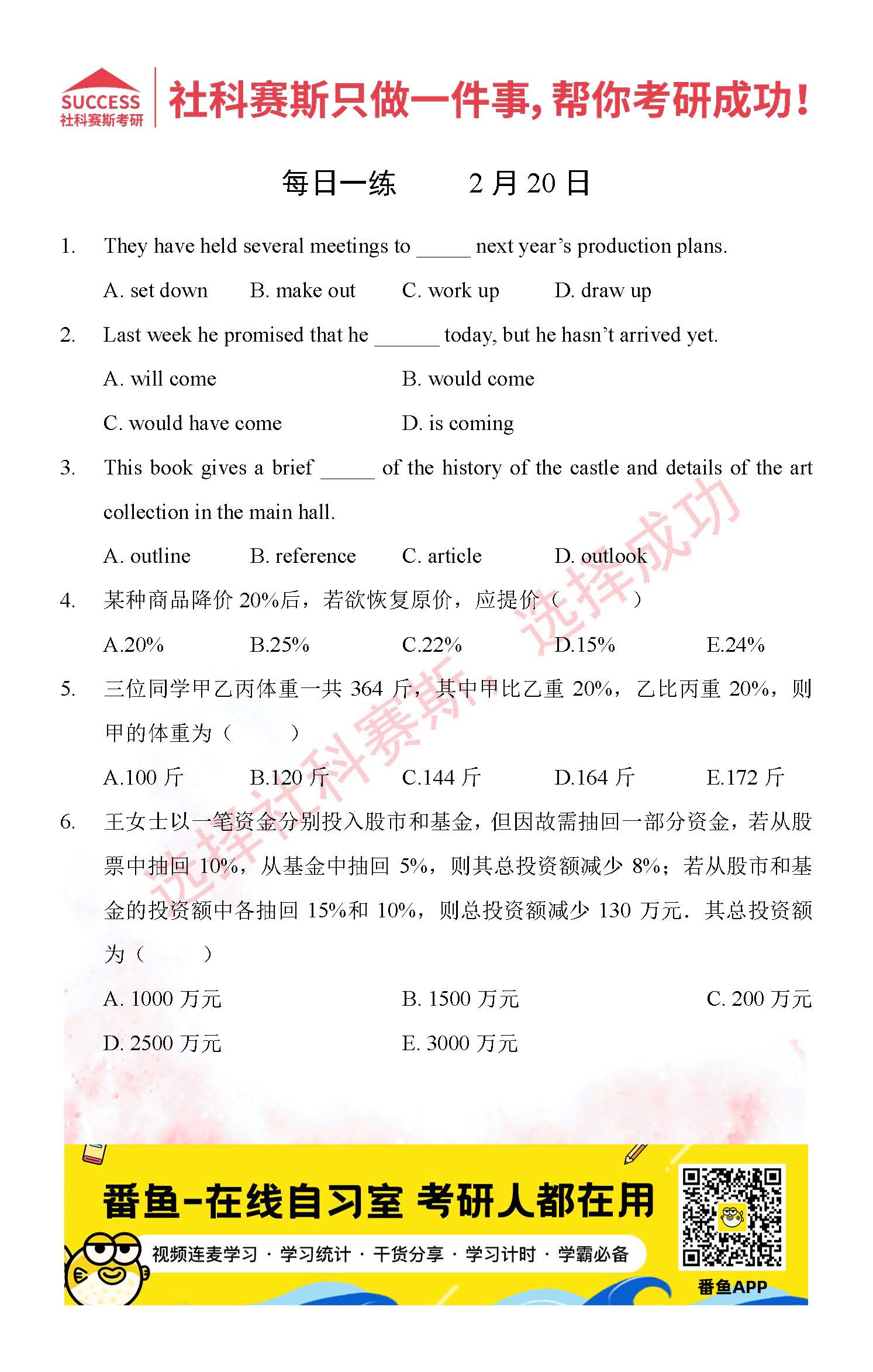 以上就是社科賽斯MBA備考網小編為大家整理2022管理類聯考2月20日每日一練及答案的全部內容,希望各位考生堅持利用起來,更多每日一練內容請持續關注MBA備考網管理類聯考每日一練。