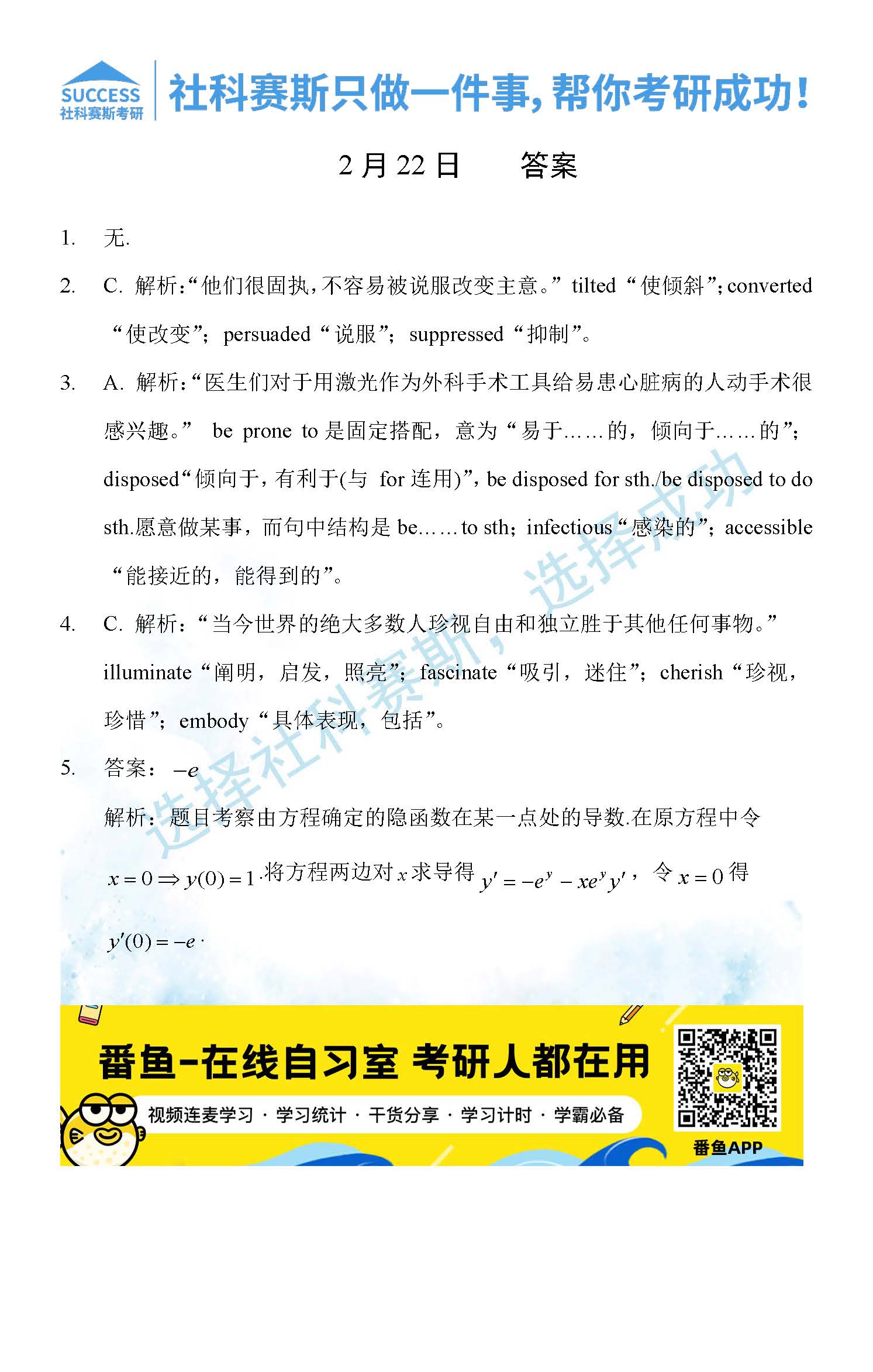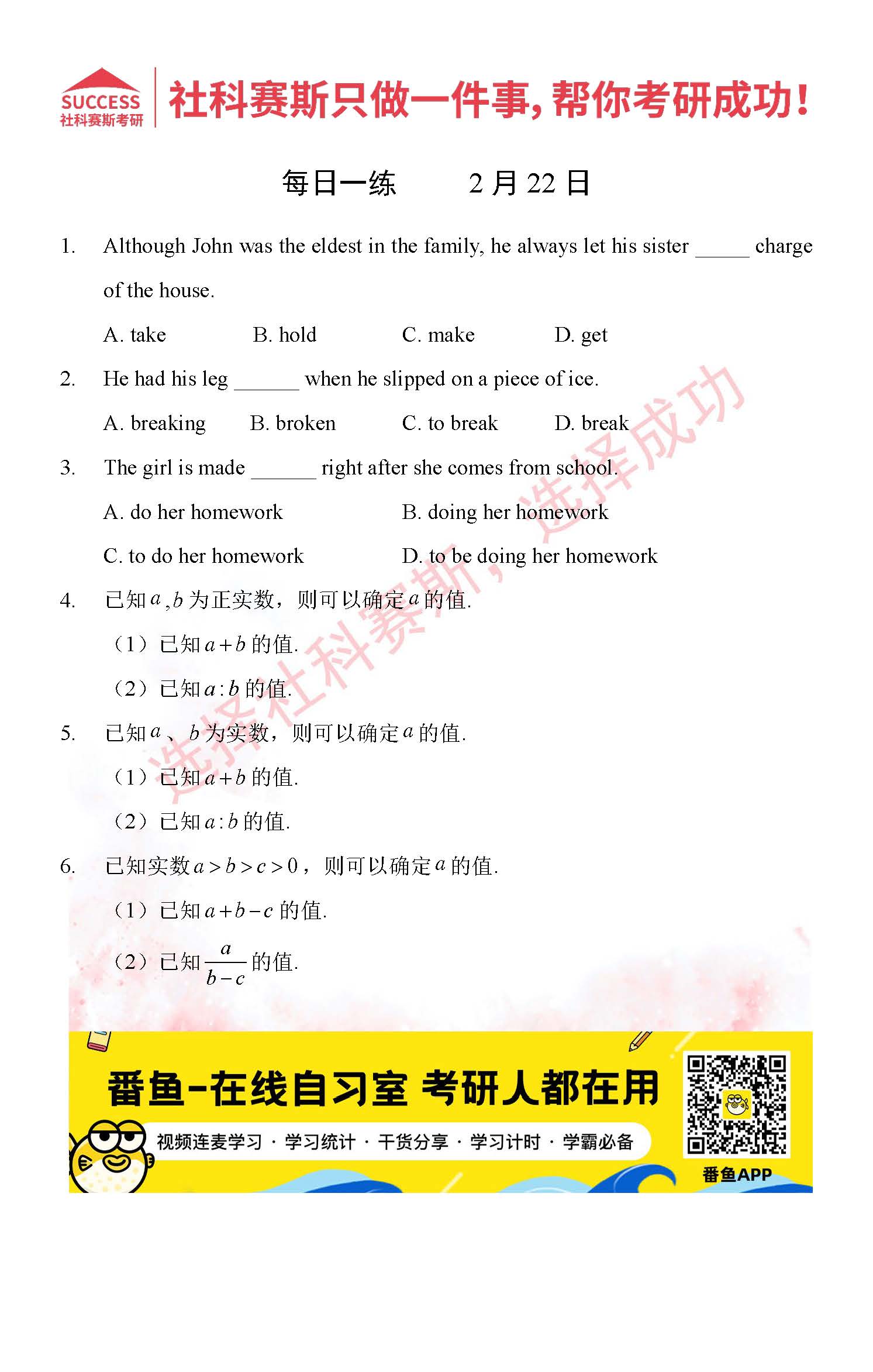 以上就是社科賽斯MBA備考網小編為大家整理2022管理類聯考2月22日每日一練及答案的全部內容,希望各位考生堅持利用起來,更多每日一練內容請持續關注MBA備考網管理類聯考每日一練。