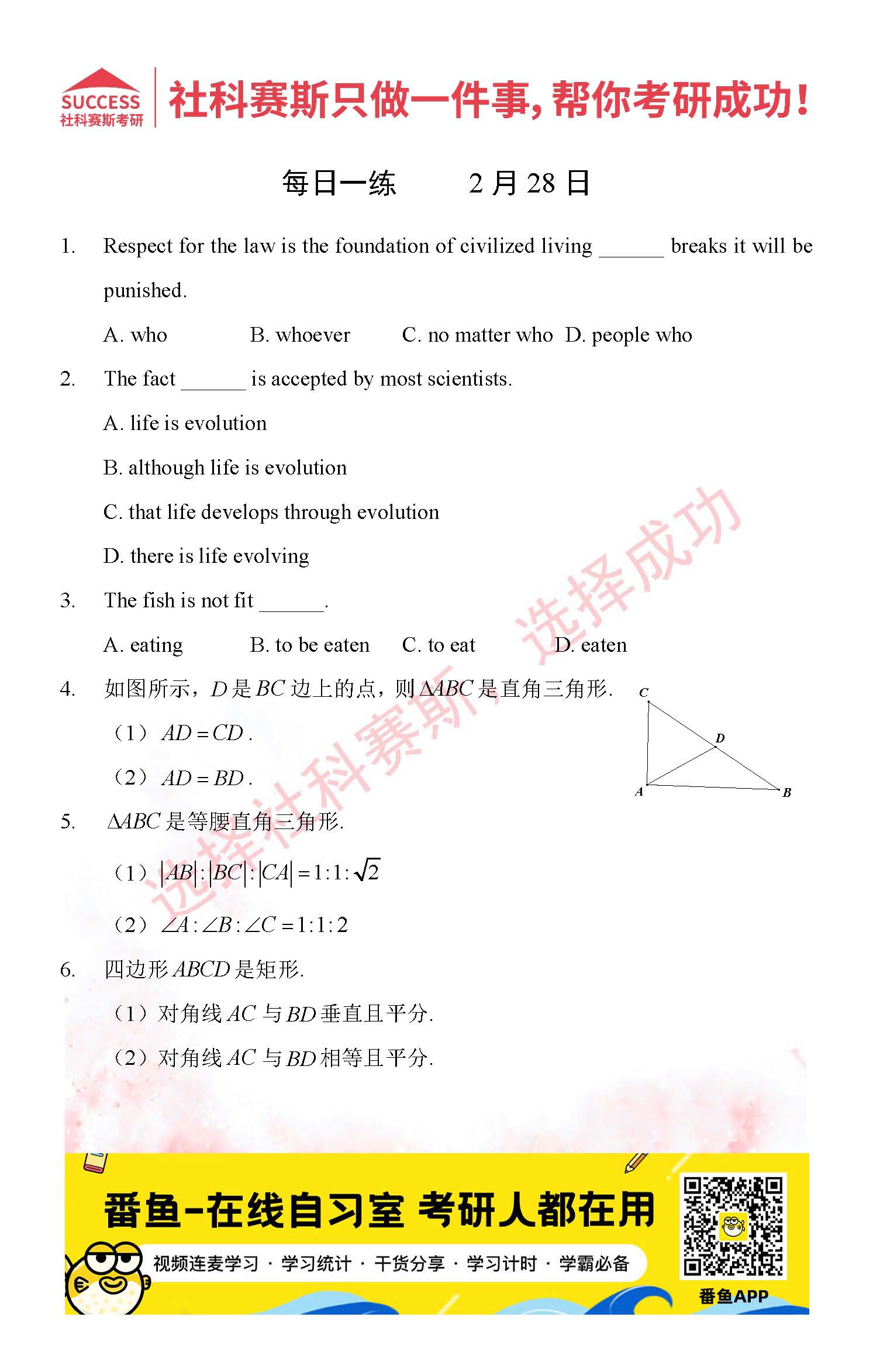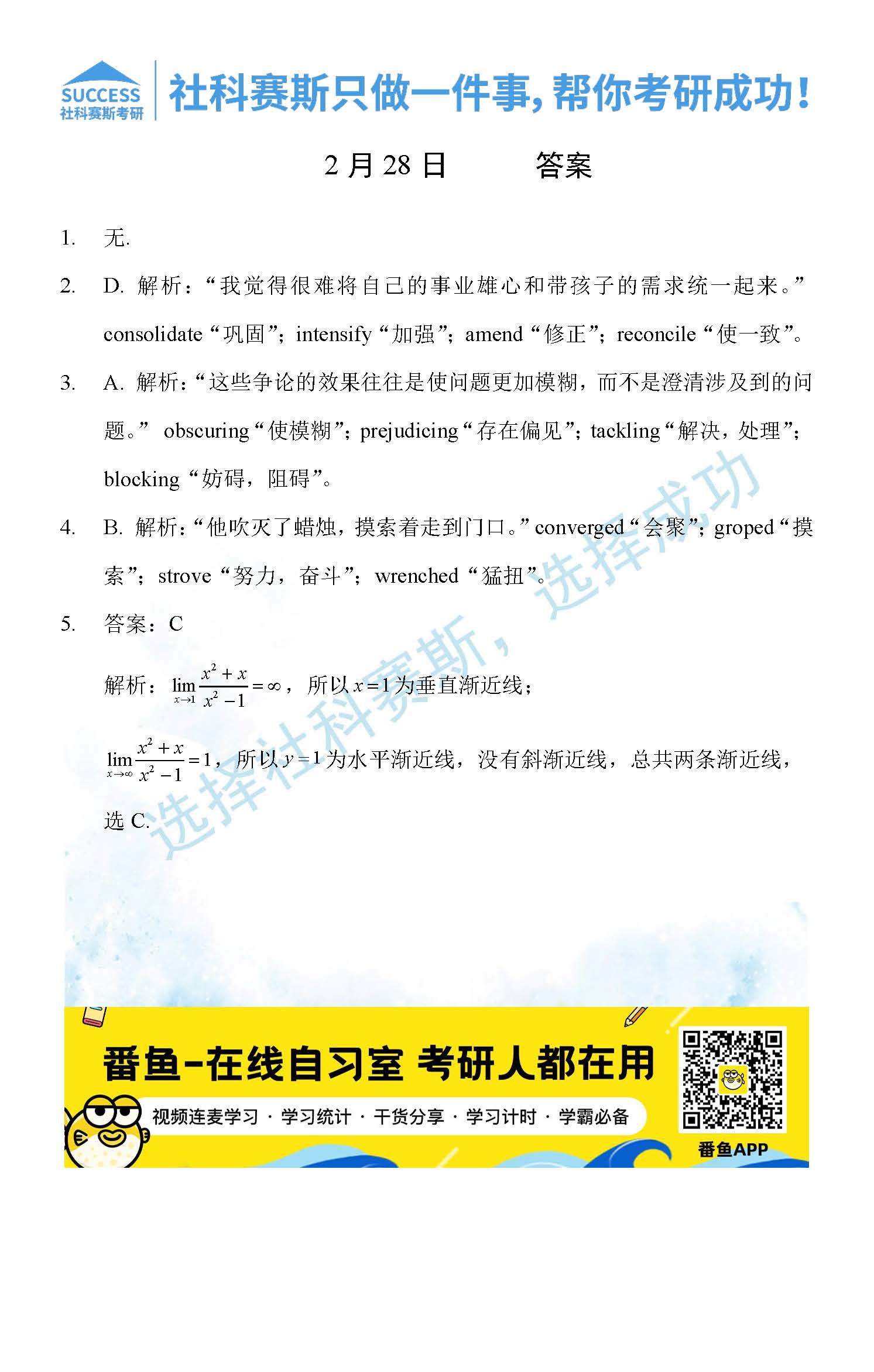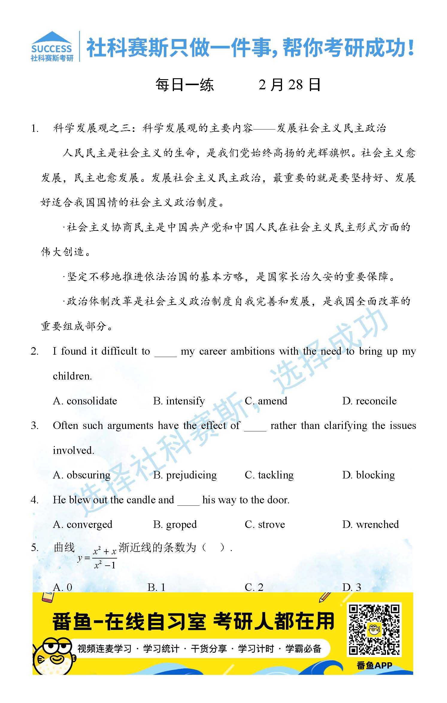 導(dǎo)讀:考研是一場持久戰(zhàn),保持良好的學(xué)習(xí)習(xí)慣,是能確保復(fù)習(xí)高效的關(guān)鍵。今天社科賽斯MBA備考網(wǎng)小編整理了“2022管理類聯(lián)2月28日每日一練及答案”的內(nèi)容,希望能對廣大考生有所幫助。