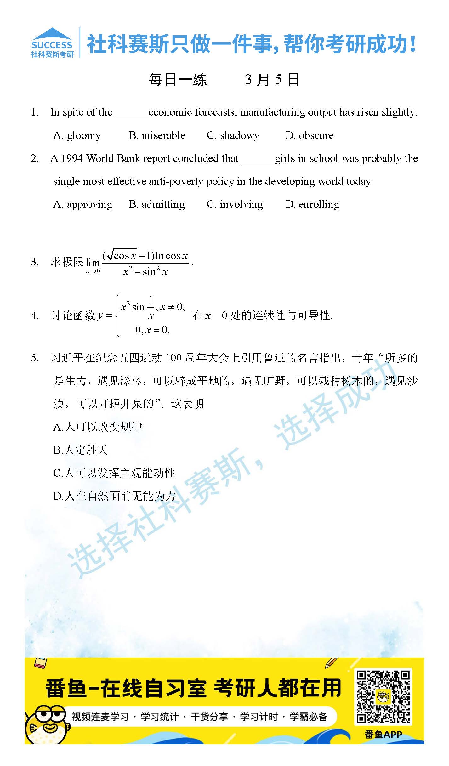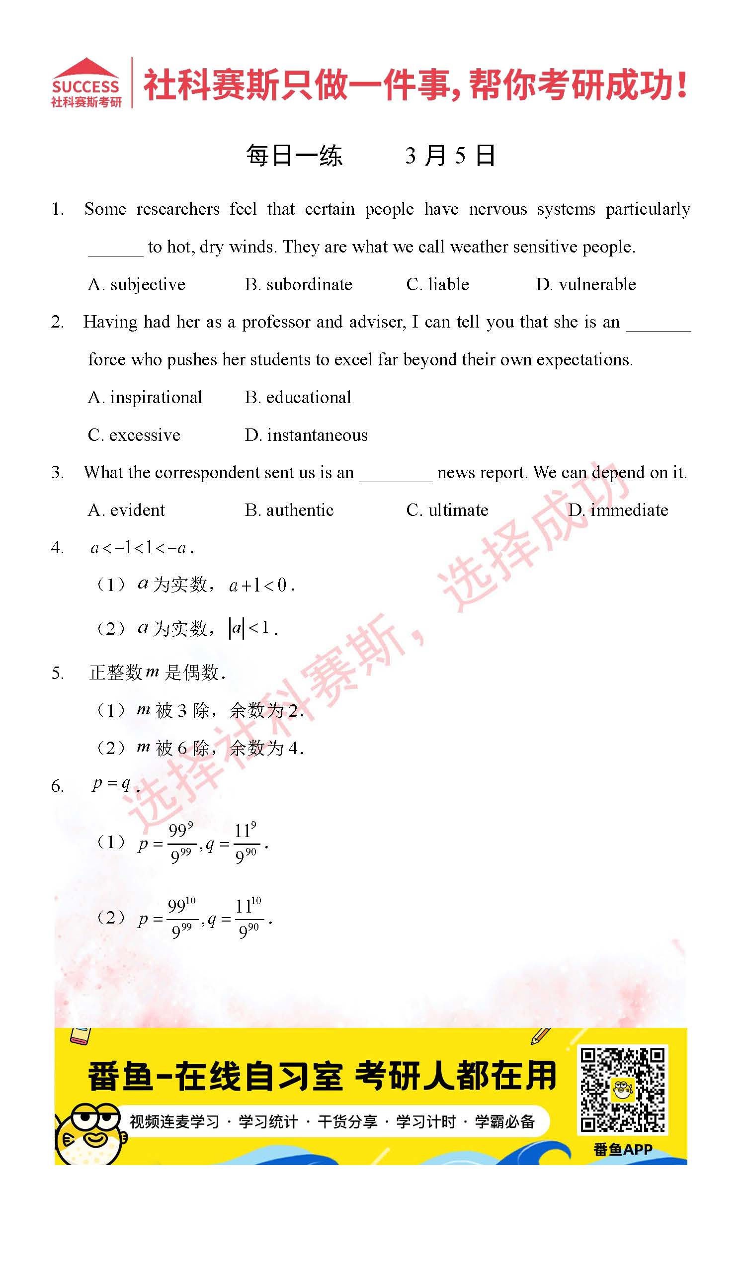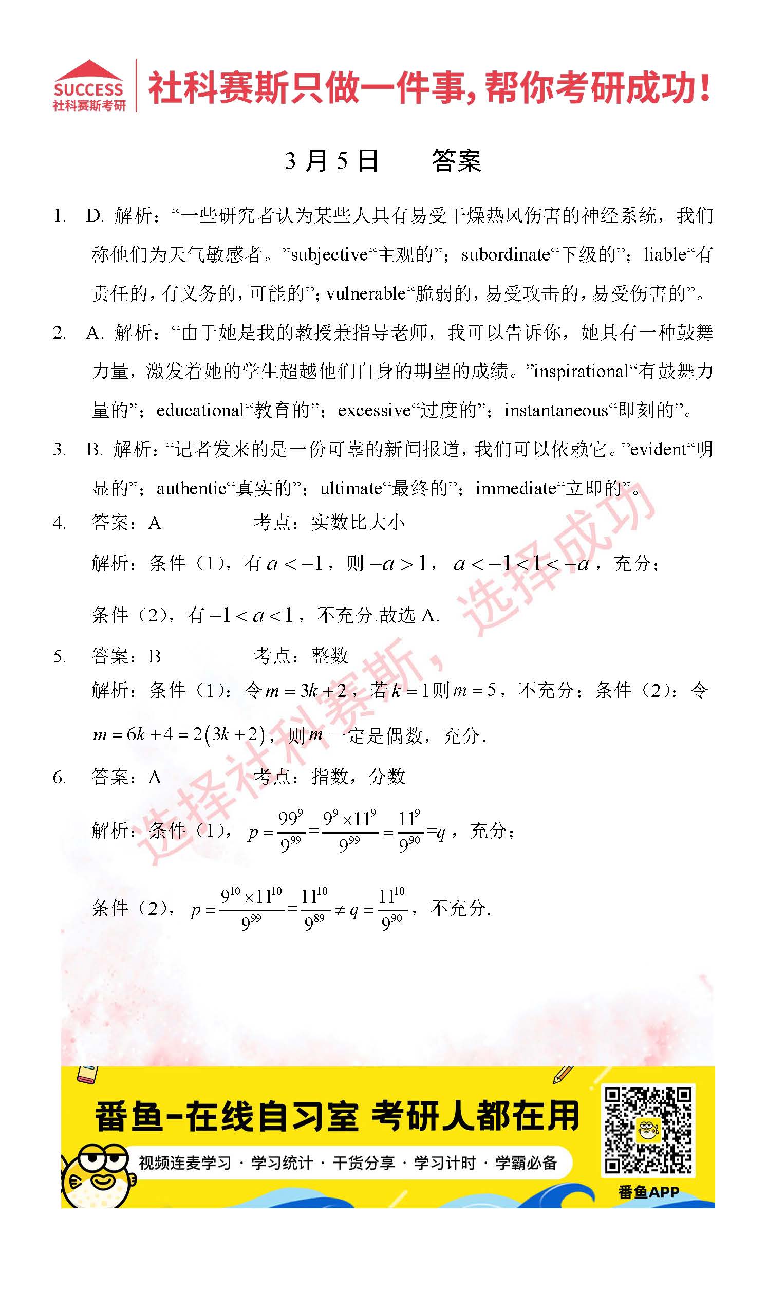 以上就是社科賽斯MBA備考網小編為大家整理2022管理類聯考3月5日每日一練及答案的全部內容,希望各位考生堅持利用起來,更多每日一練內容請持續關注MBA備考網管理類聯考每日一練。