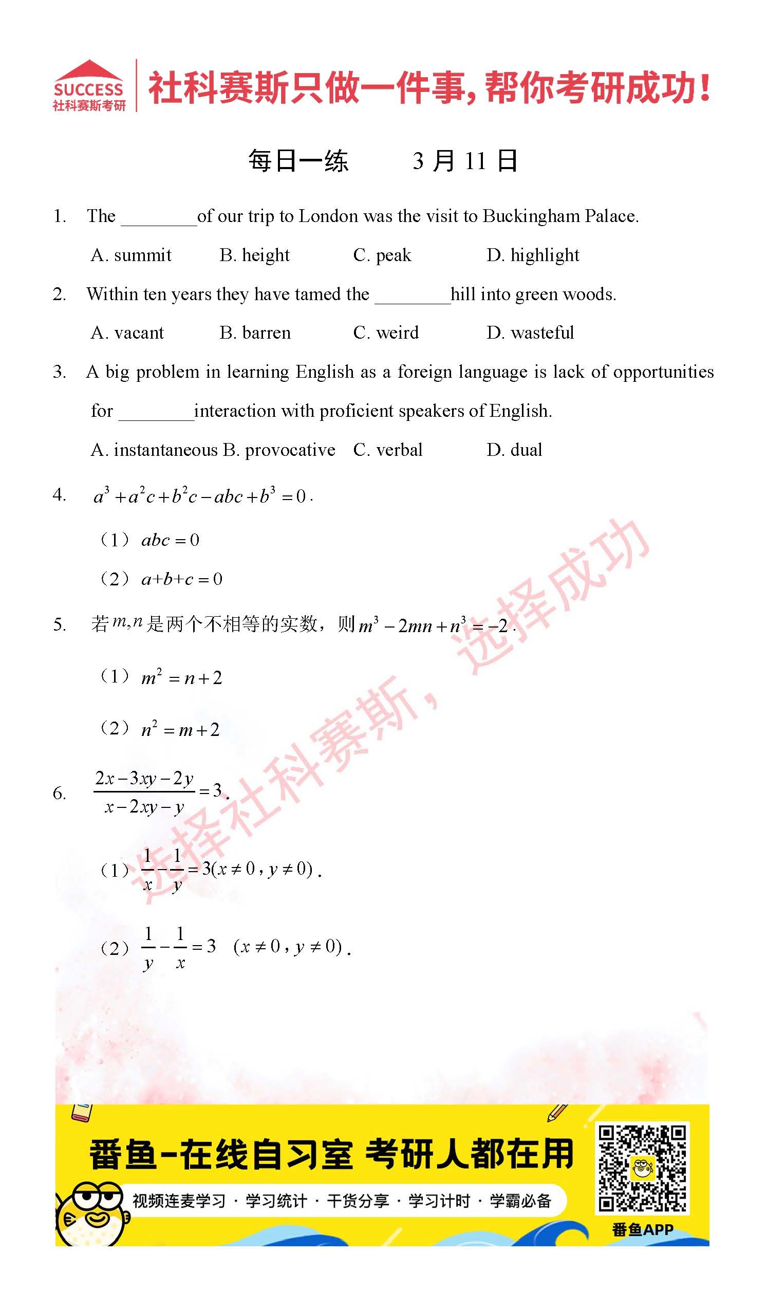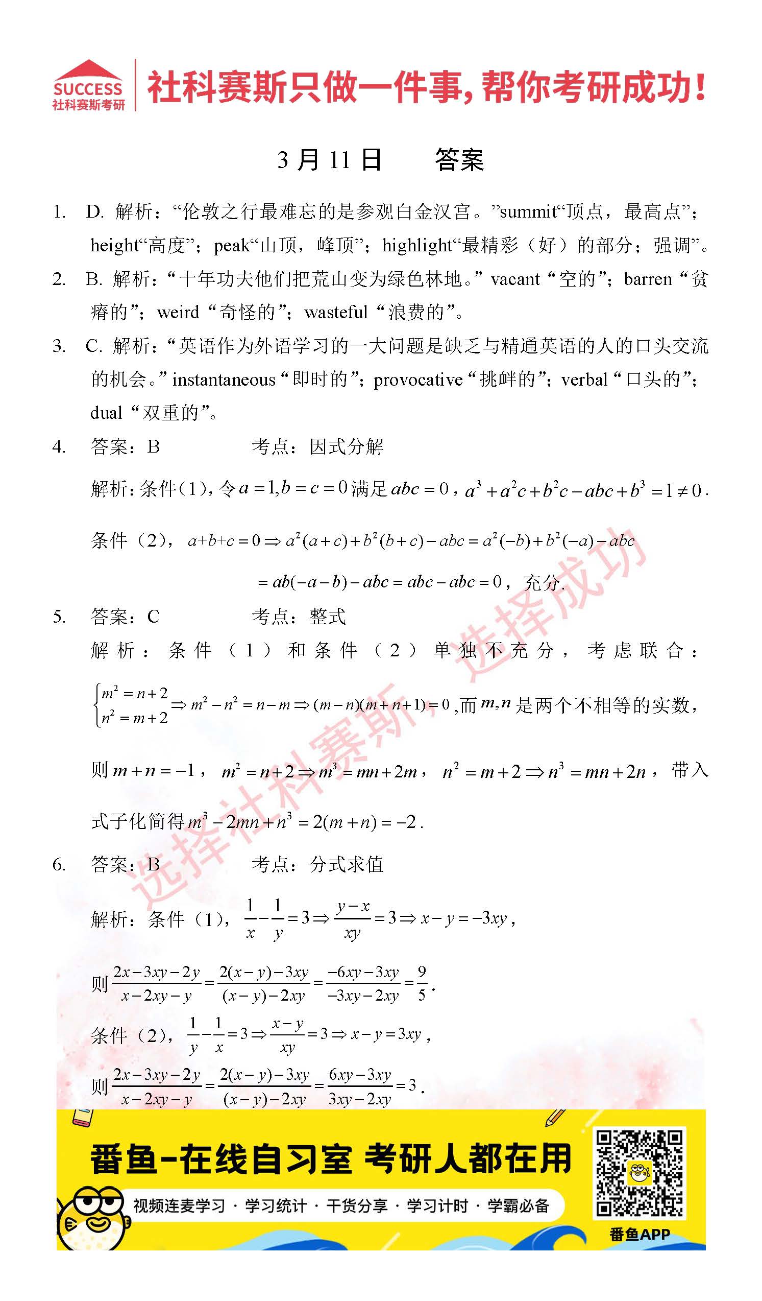 導讀:考研是一場持久戰,保持良好的學習習慣,是能確保復習高效的關鍵。今天社科賽斯MBA備考網小編整理了“2022管理類聯3月11日每日一練及答案”的內容,希望能對廣大考生有所幫助。