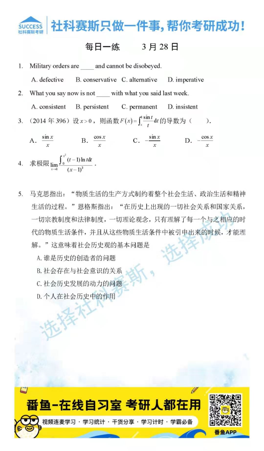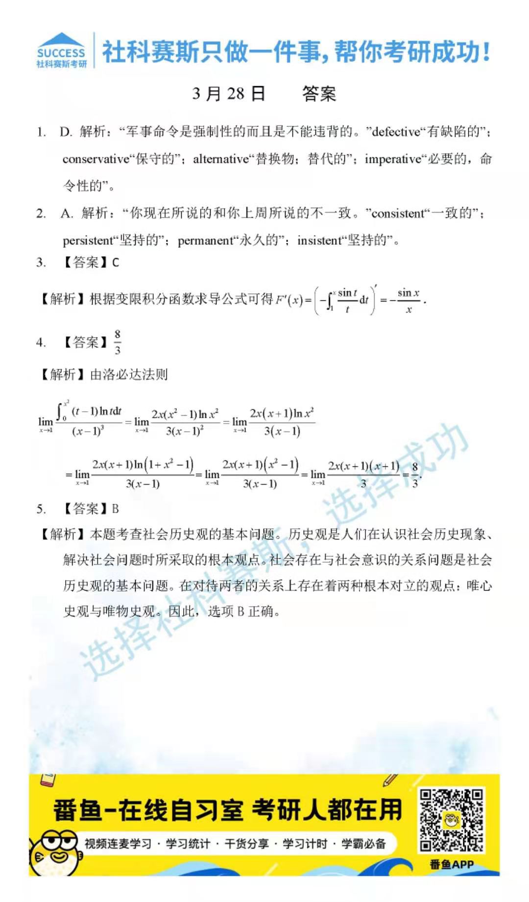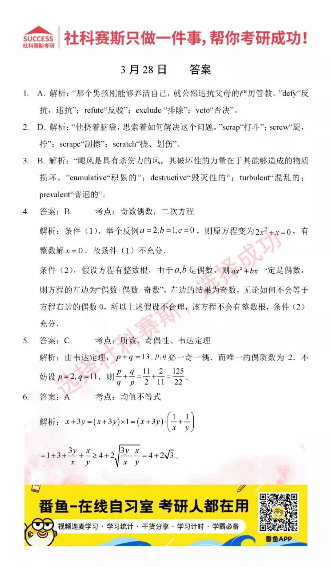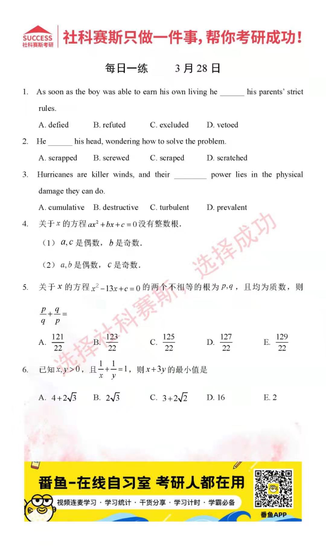 以上就是社科賽斯MBA備考網小編為大家整理2022管理類聯考3月28日每日一練及答案的全部內容,希望各位考生堅持利用起來,更多每日一練內容請持續關注MBA備考網管理類聯考每日一練。