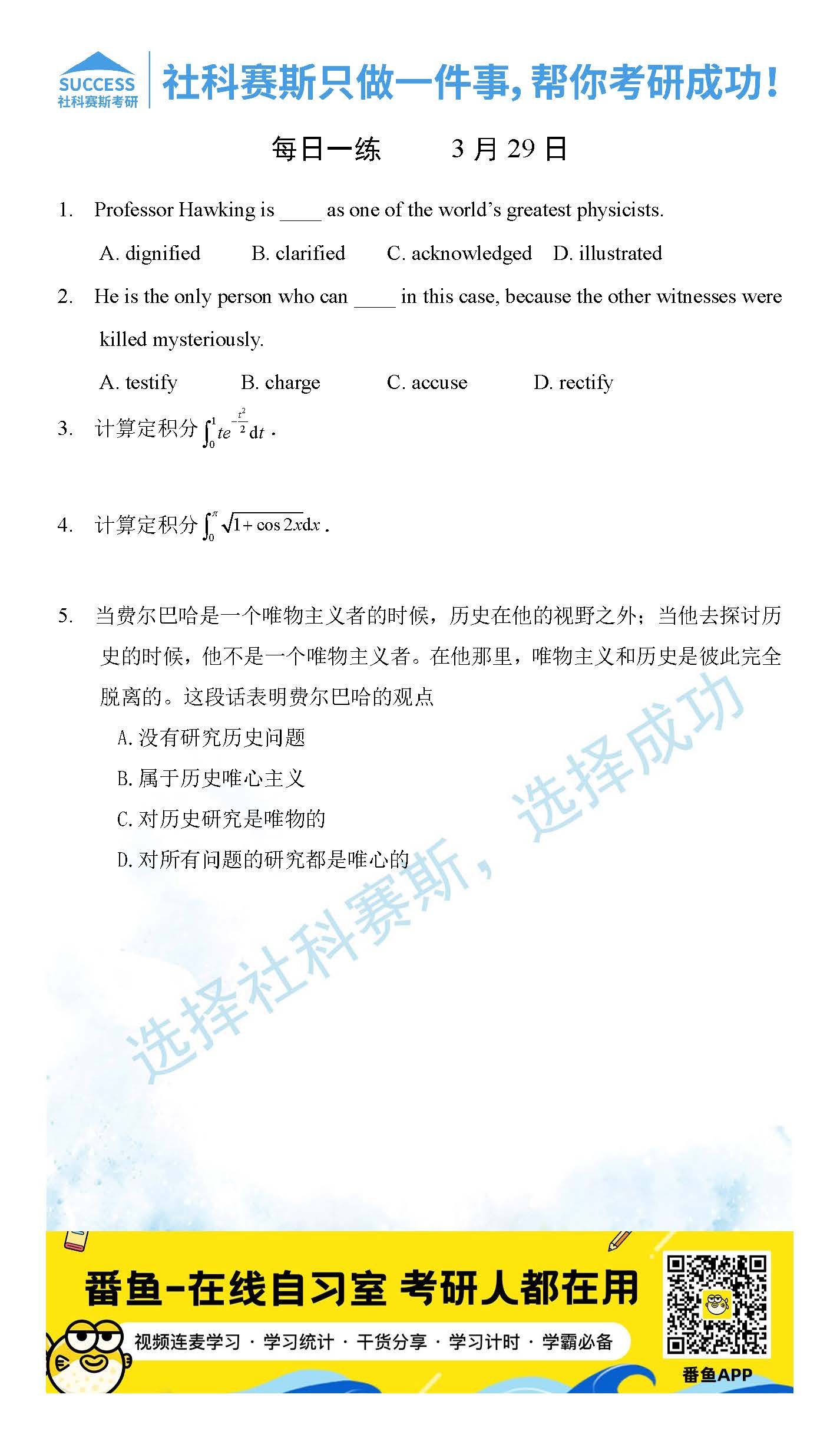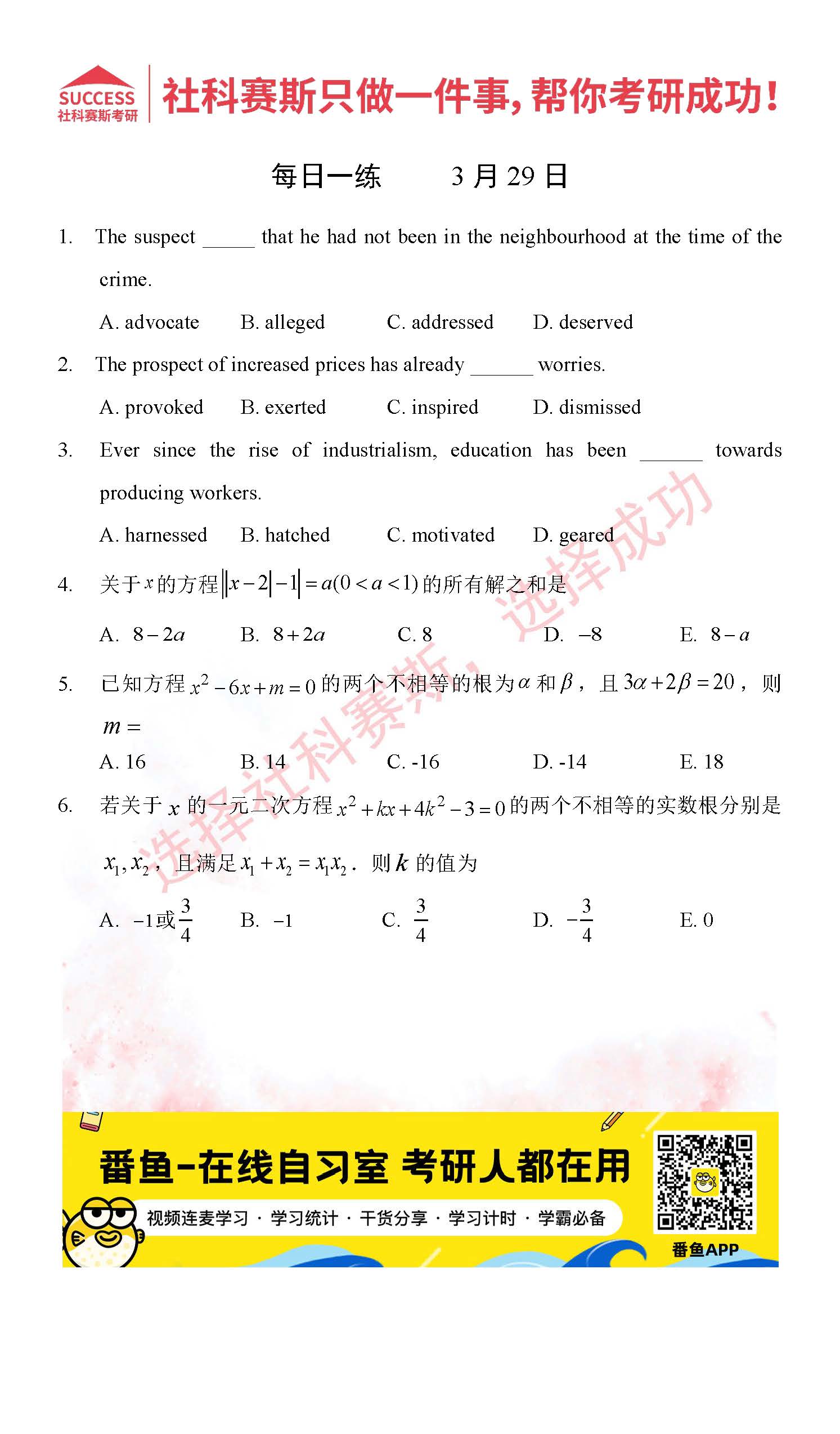 以上就是社科賽斯MBA備考網小編為大家整理2022管理類聯考3月29日每日一練及答案的全部內容,希望各位考生堅持利用起來,更多每日一練內容請持續關注MBA備考網管理類聯考每日一練。