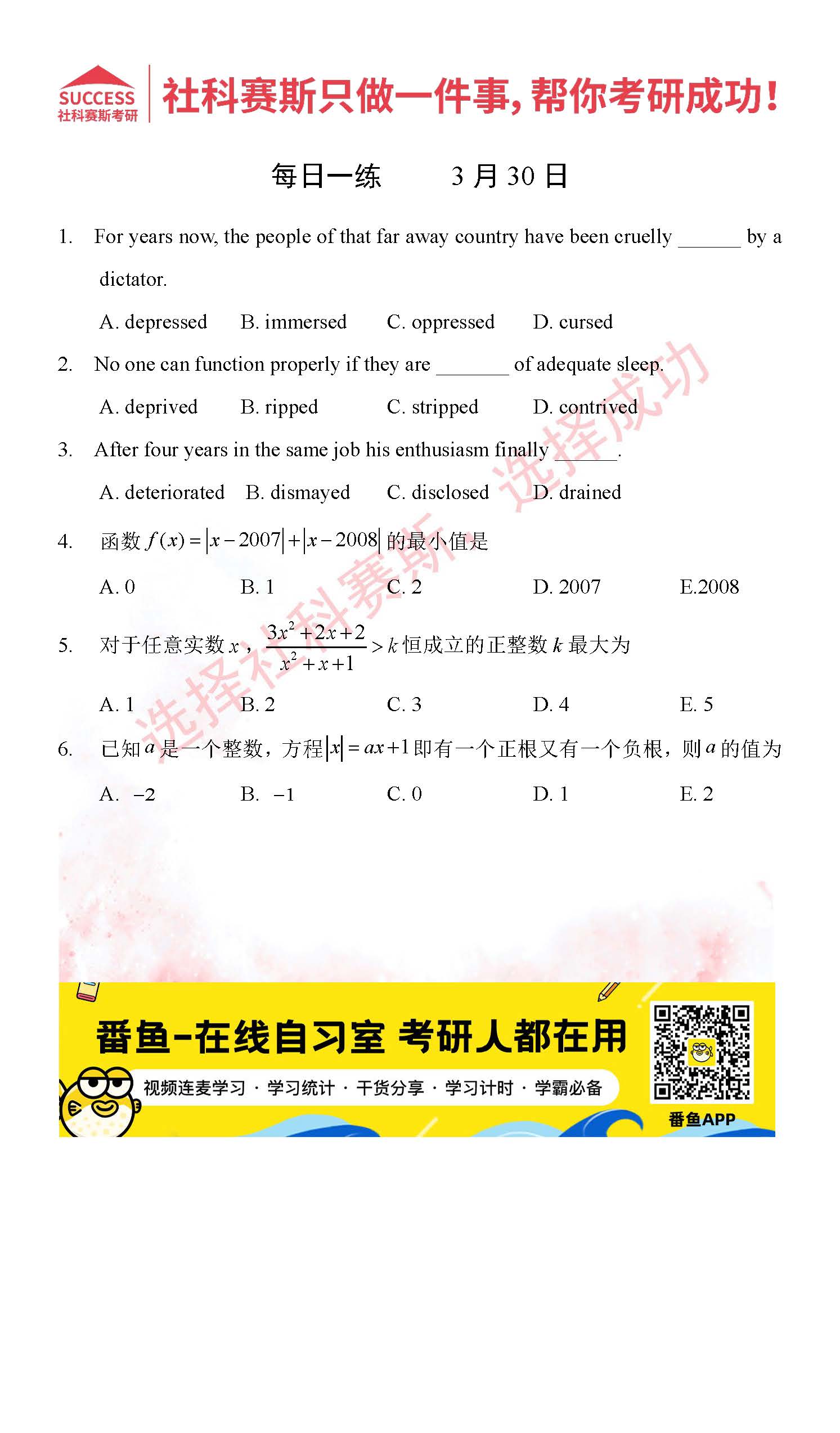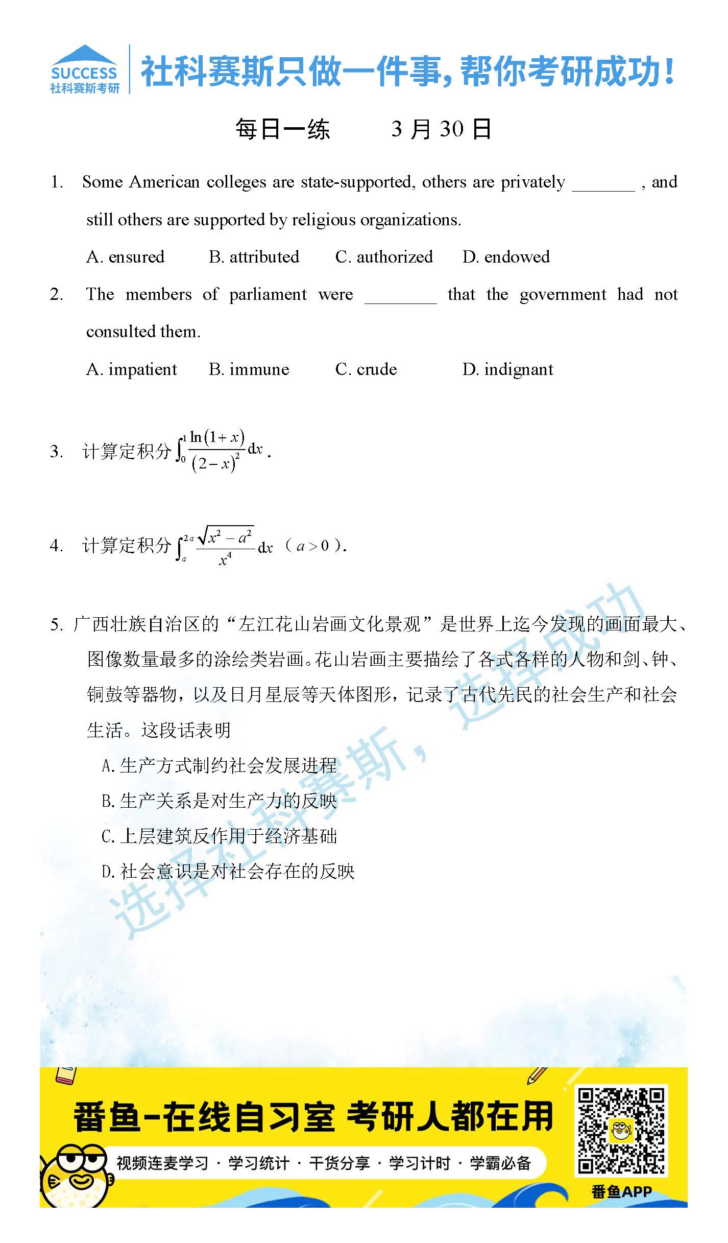 導讀:考研是一場持久戰,保持良好的學習習慣,是能確保復習高效的關鍵。今天社科賽斯MBA備考網小編整理了“2022管理類聯3月30日每日一練及答案”的內容,希望能對廣大考生有所幫助。