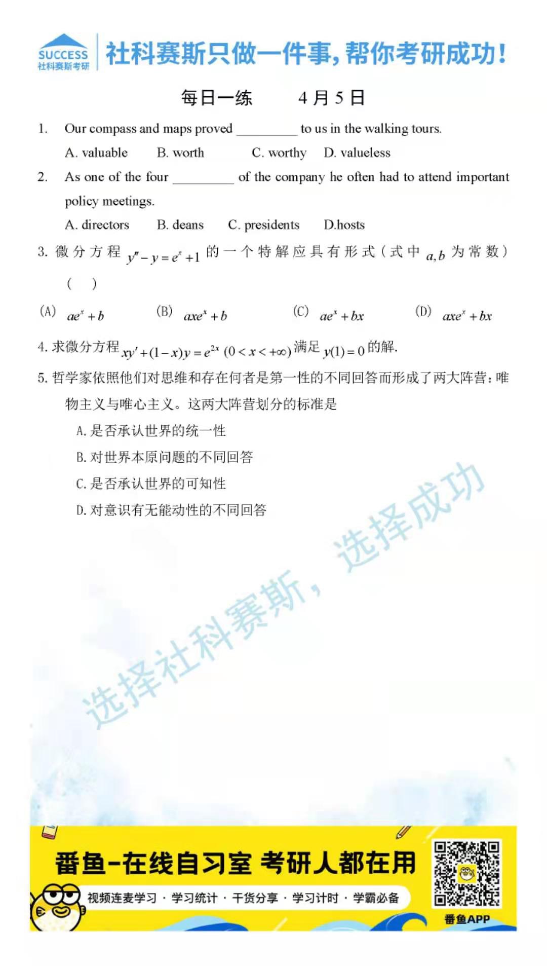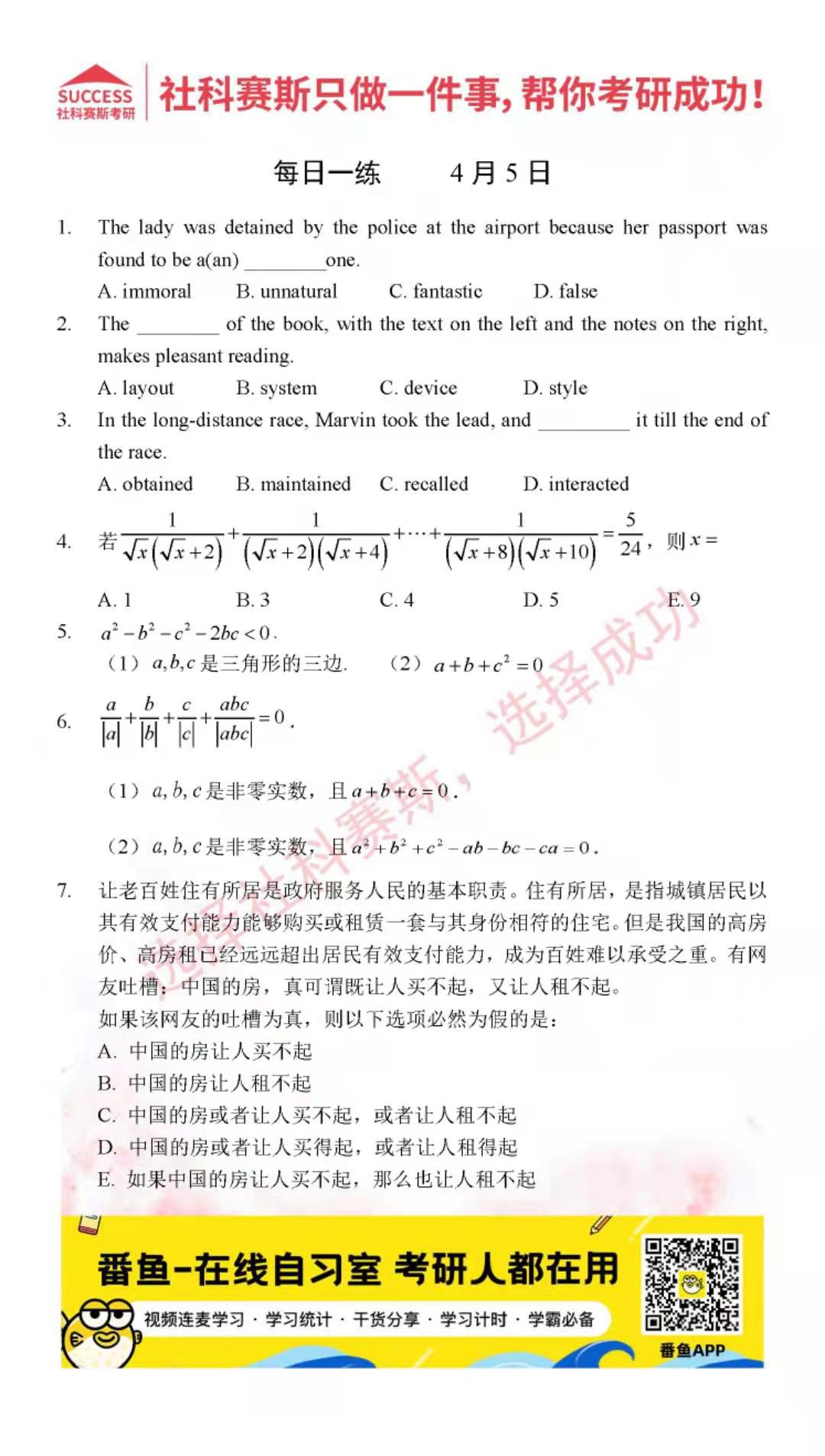 導讀:考研是一場持久戰,保持良好的學習習慣,是能確保復習高效的關鍵。今天社科賽斯MBA備考網小編整理了“2022管理類聯考4月5日每日一練及答案”的內容,希望能對廣大考生有所幫助。