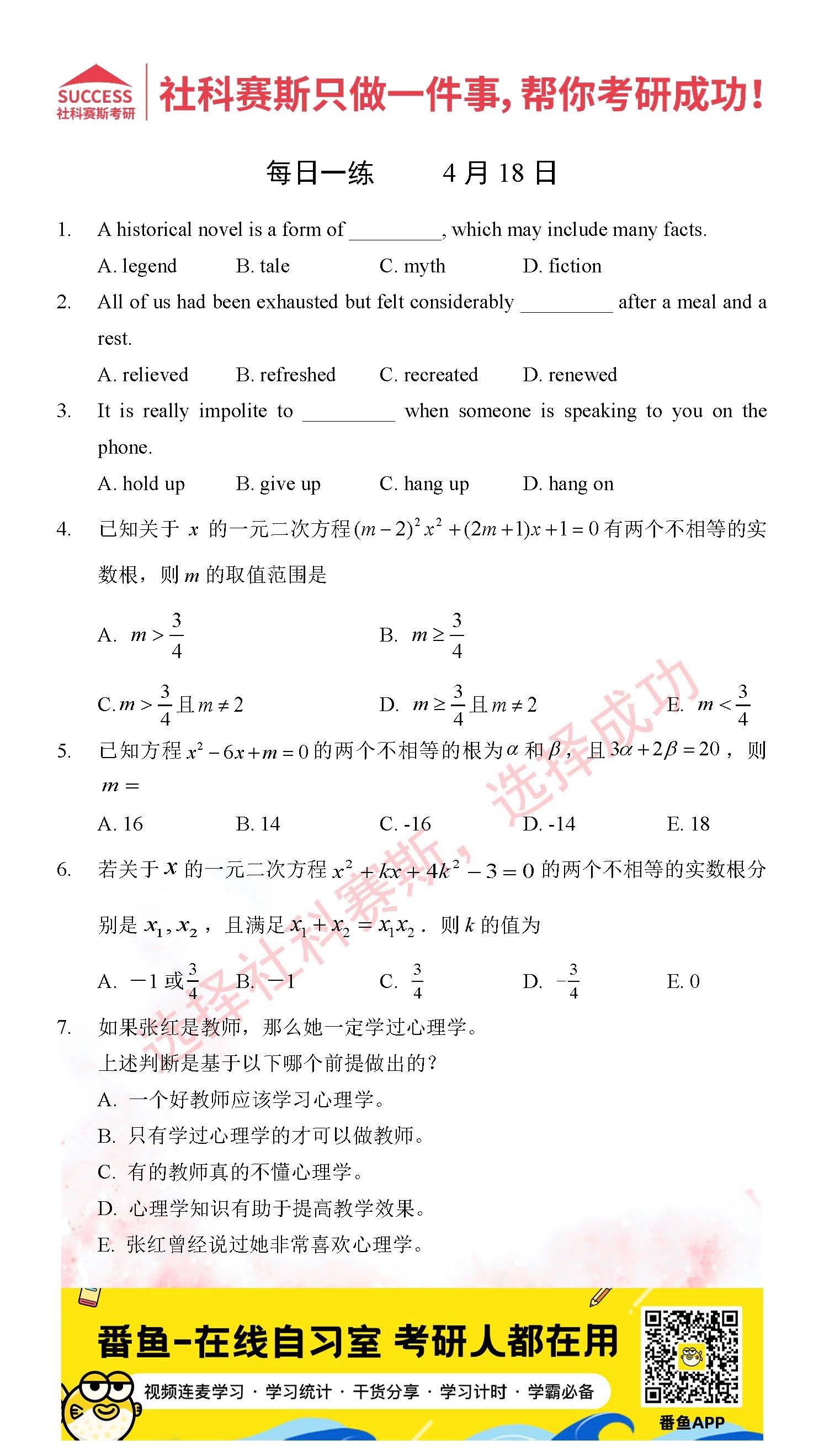 首頁> 管理類聯(lián)考每日一練 > 2022管理類聯(lián)考4月18日每日一練及答案