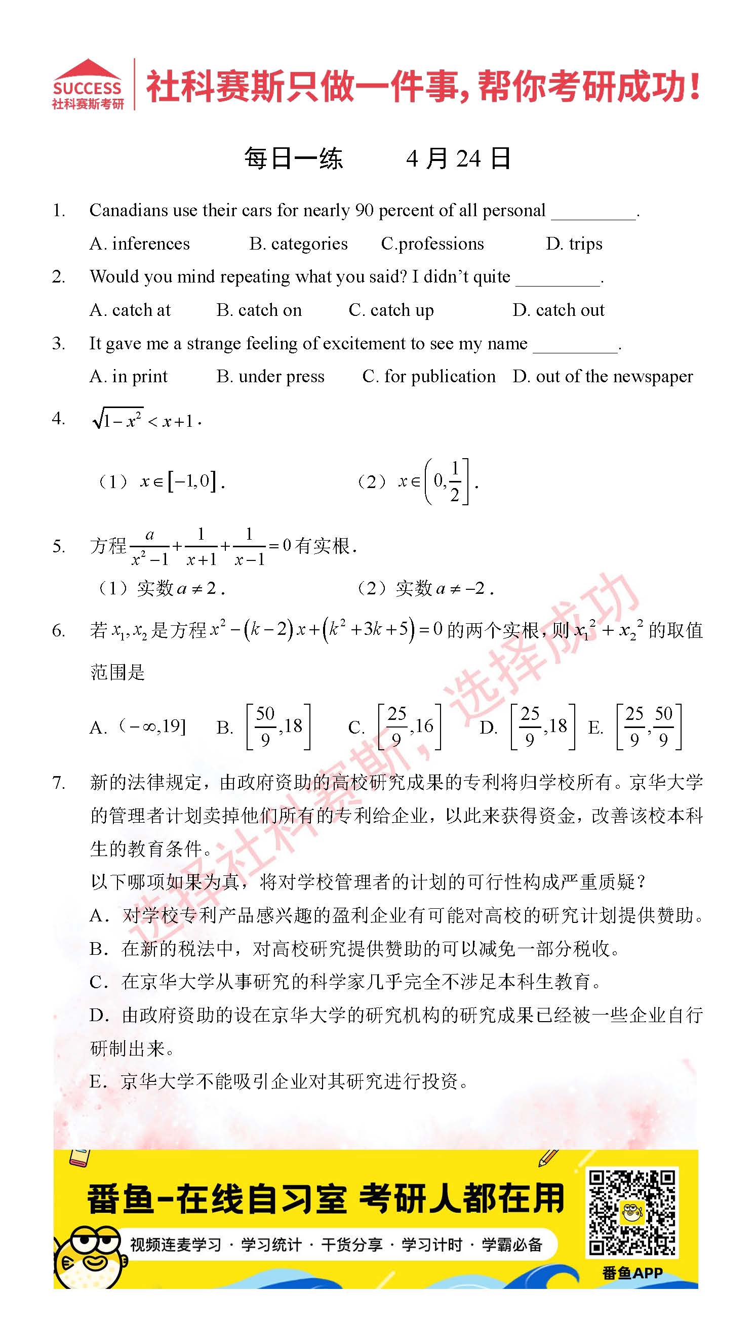 導讀:考研是一場持久戰,保持良好的學習習慣,是能確保復習高效的關鍵。今天社科賽斯MBA備考網小編整理了“2022管理類聯考4月24日每日一練及答案”的內容,希望能對廣大考生有所幫助。