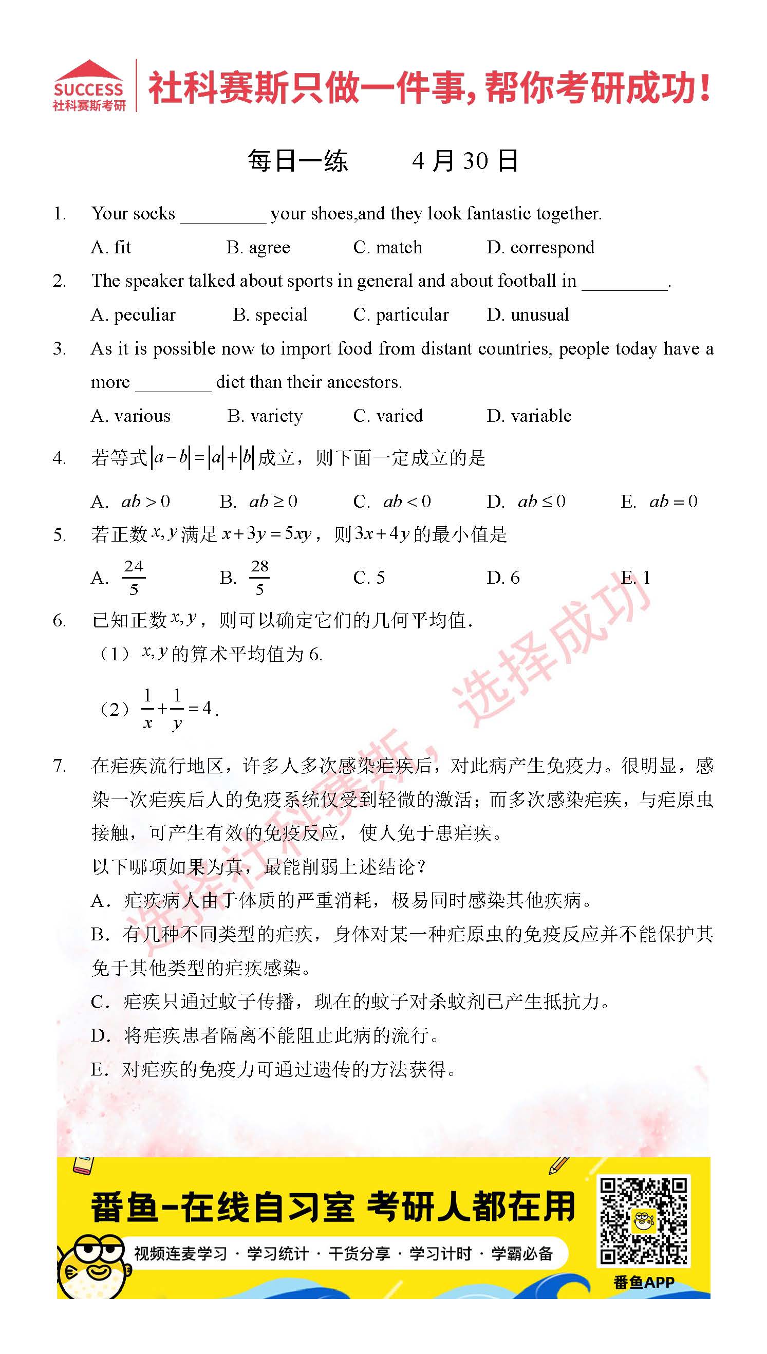 首頁> 管理類聯(lián)考每日一練 > 2022管理類聯(lián)考4月30日每日一練及答案