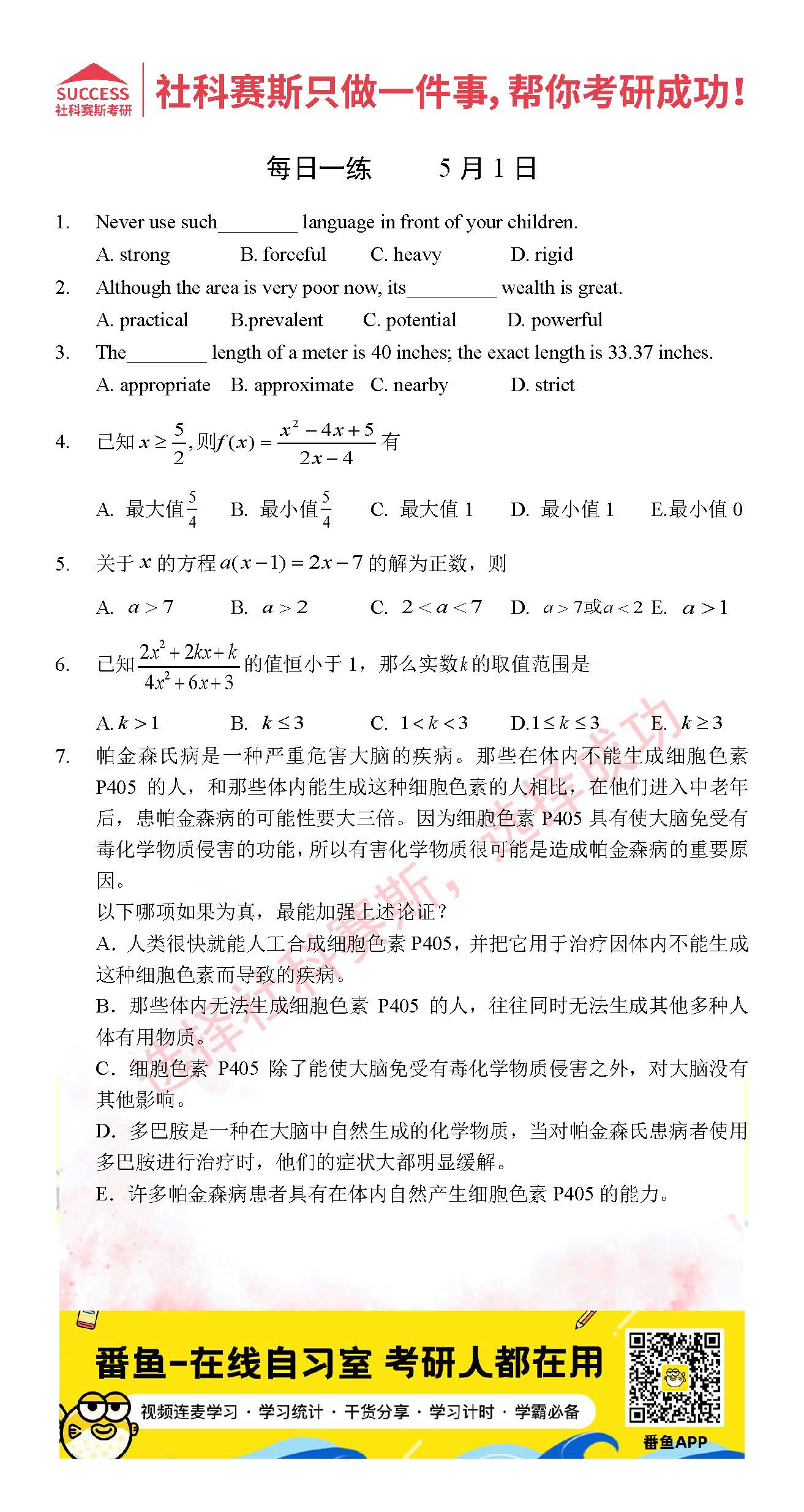的全部內(nèi)容,希望各位考生堅(jiān)持利用起來,更多每日一練內(nèi)容請持續(xù)關(guān)注MBA備考網(wǎng)管理類聯(lián)考每日一練。