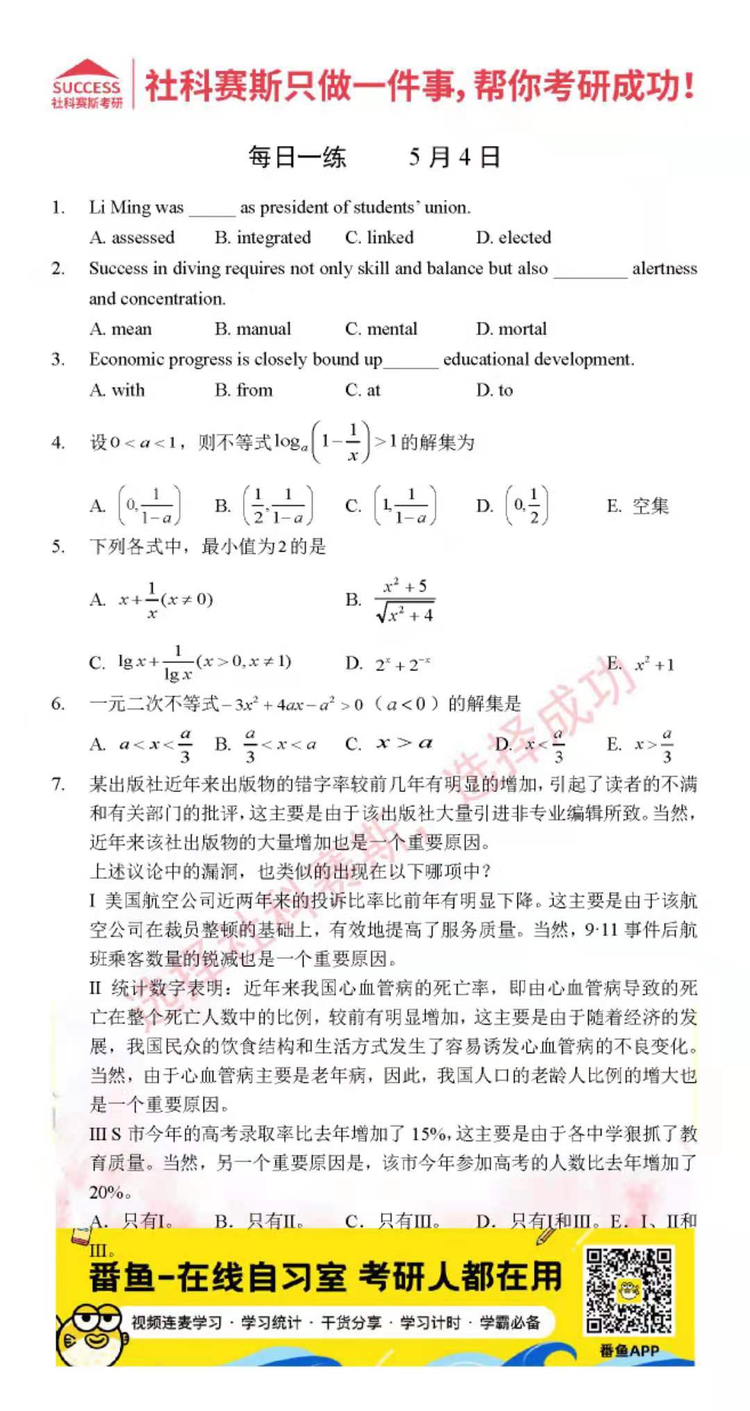導讀:考研是一場持久戰,保持良好的學習習慣,是能確保復習高效的關鍵。今天社科賽斯MBA備考網小編整理了“2022管理類聯考5月4日每日一練及答案”的內容,希望能對廣大考生有所幫助。