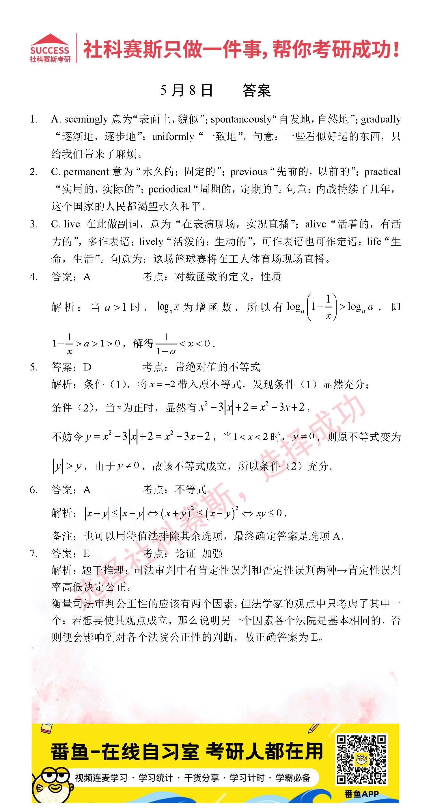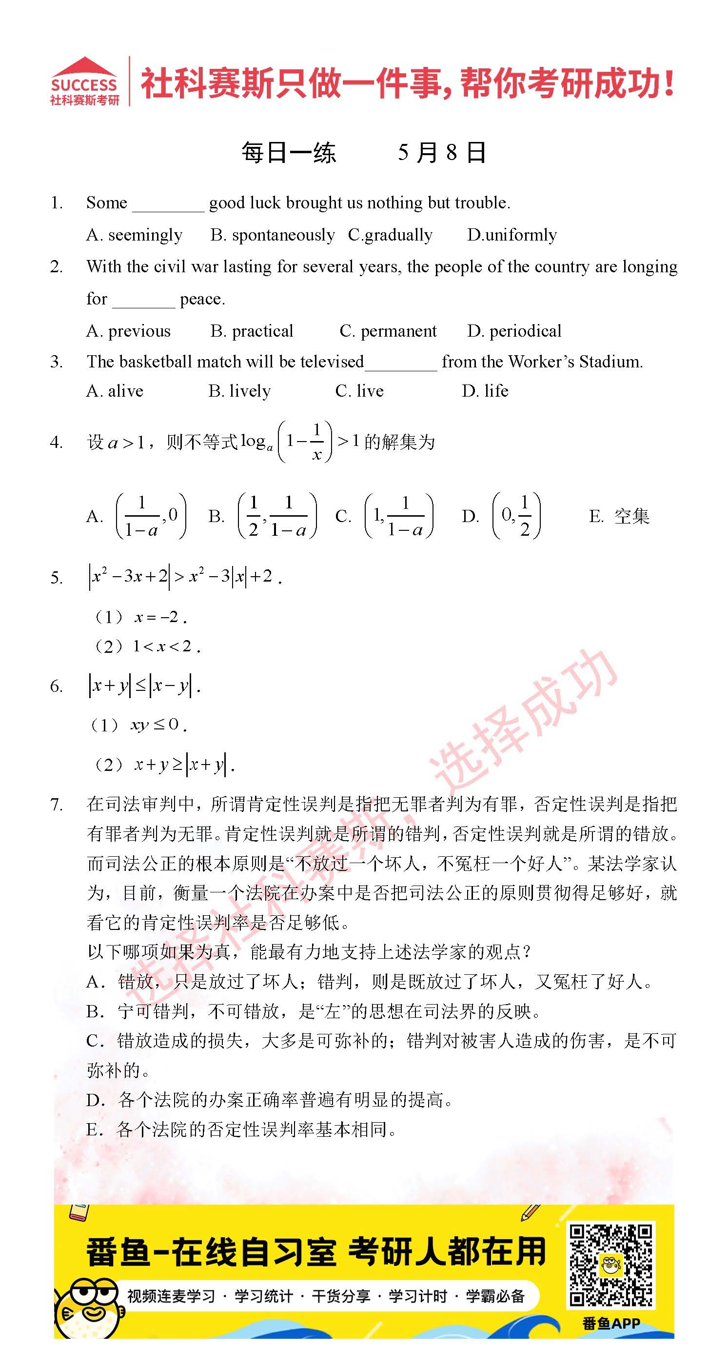 導讀:考研是一場持久戰,保持良好的學習習慣,是能確保復習高效的關鍵。今天社科賽斯MBA備考網小編整理了“2022管理類聯考5月8日每日一練及答案”的內容,希望能對廣大考生有所幫助。
