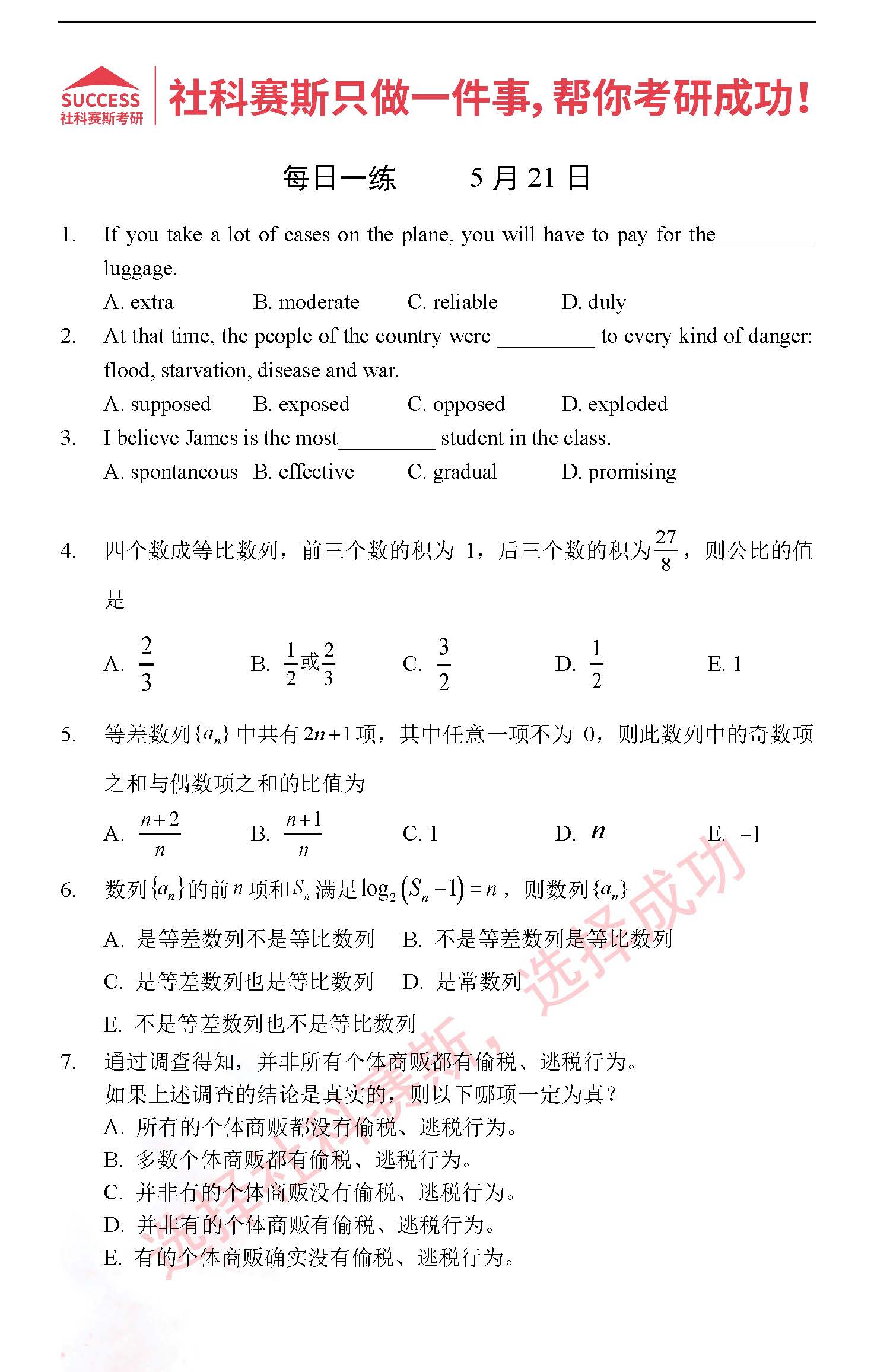 導讀:考研是一場持久戰,保持良好的學習習慣,是能確保復習高效的關鍵。今天社科賽斯MBA備考網小編整理了“2022管理類聯考5月21日每日一練及答案”的內容,希望能對廣大考生有所幫助。