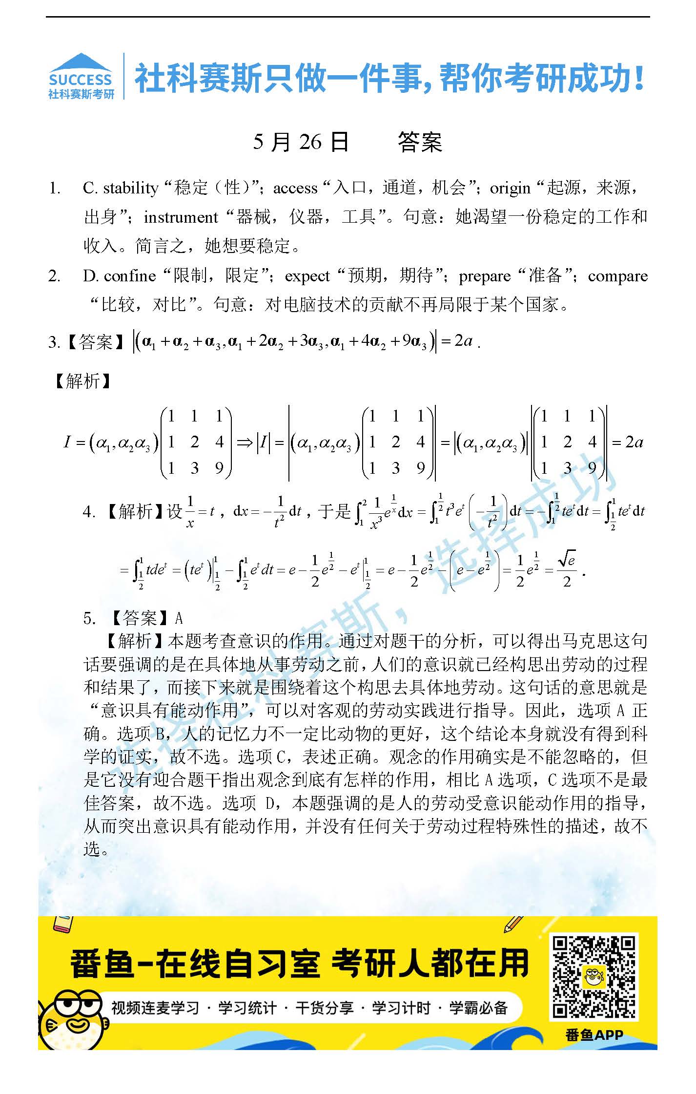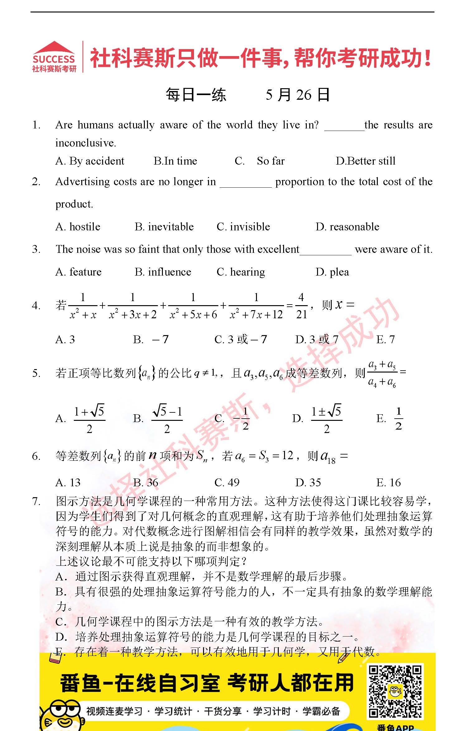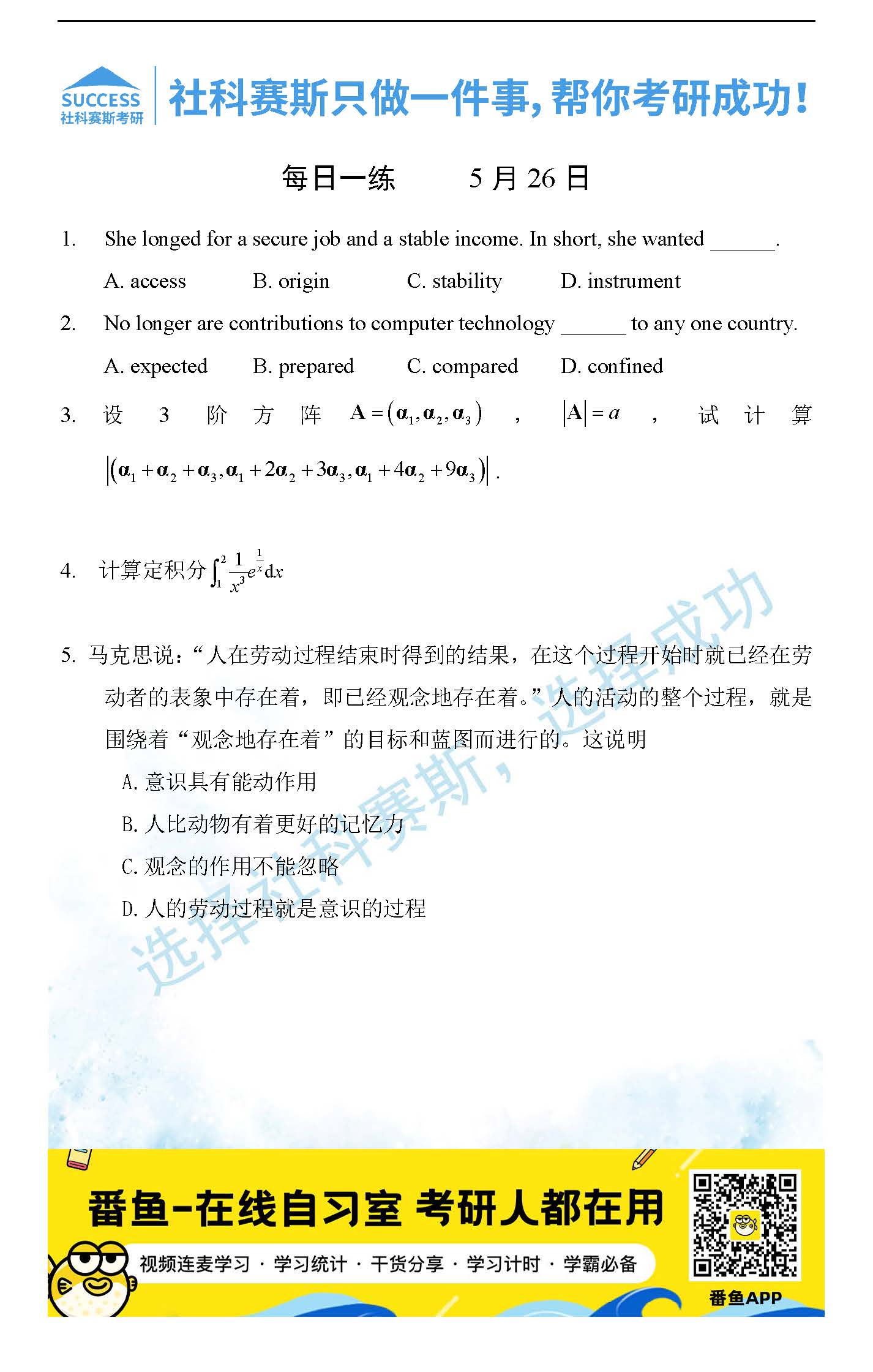 以上就是社科賽斯MBA備考網小編為大家整理2022管理類聯考5月26日每日一練及答案的全部內容,希望各位考生堅持利用起來,更多每日一練內容請持續關注MBA備考網管理類聯考每日一練。