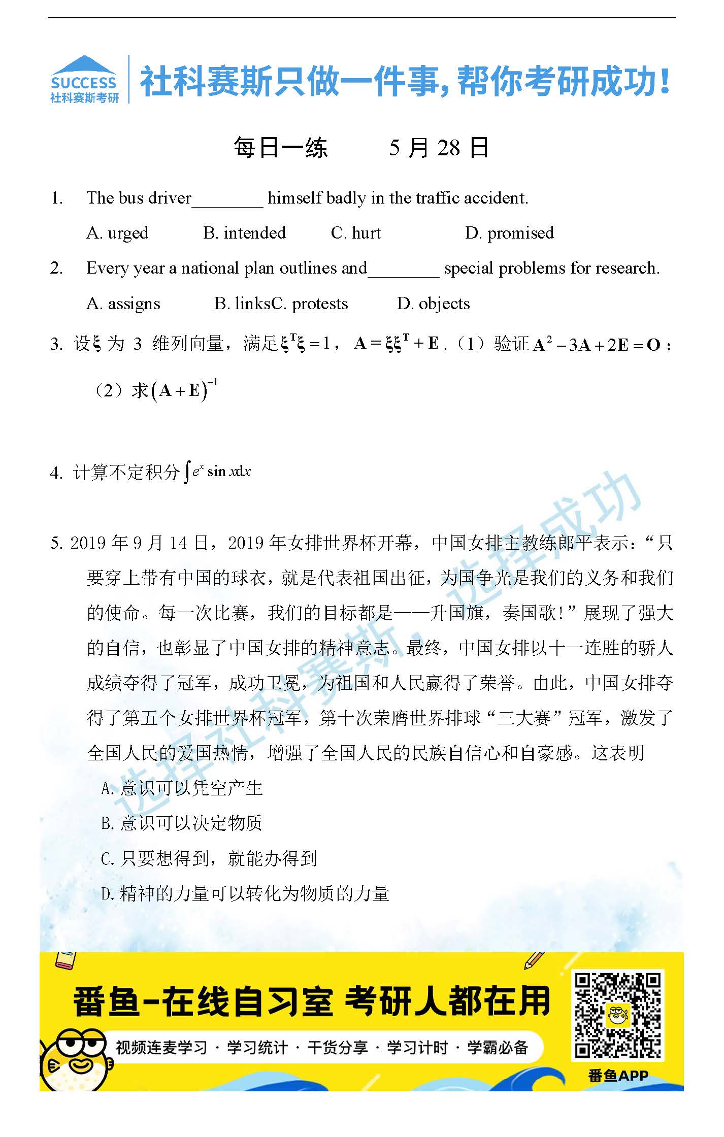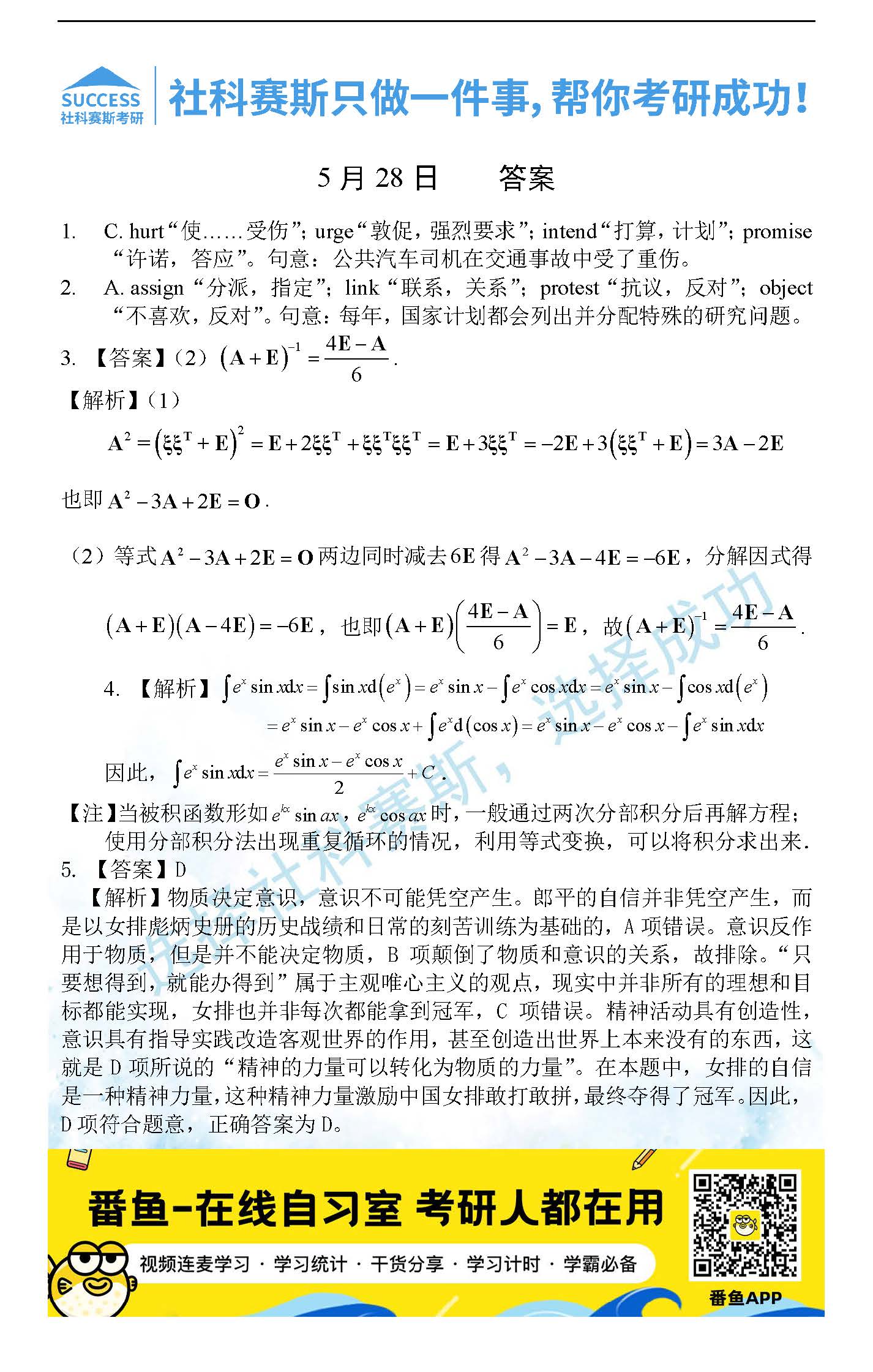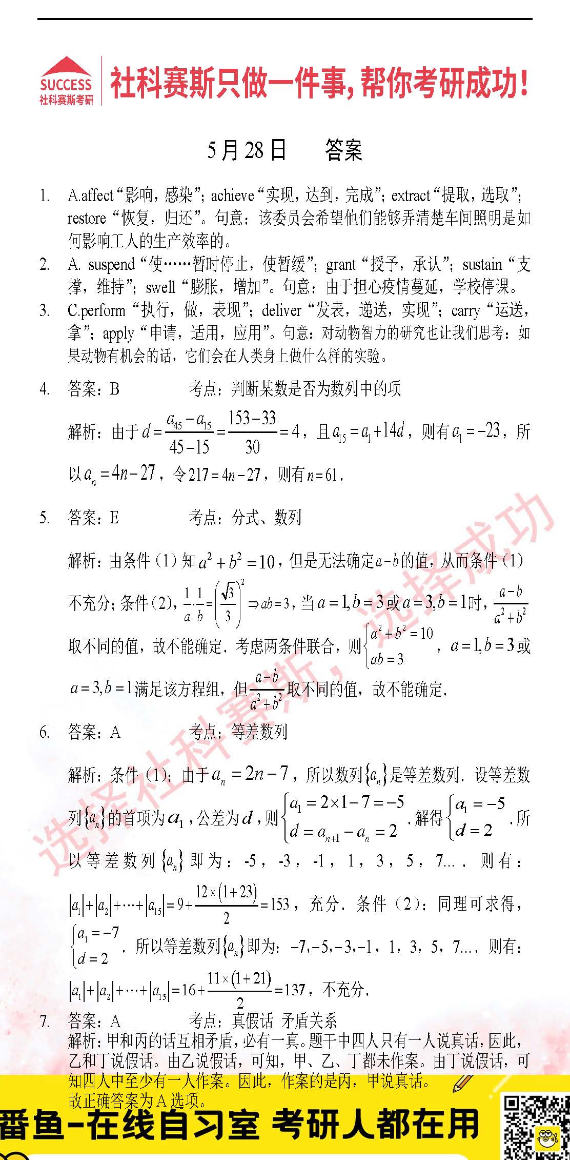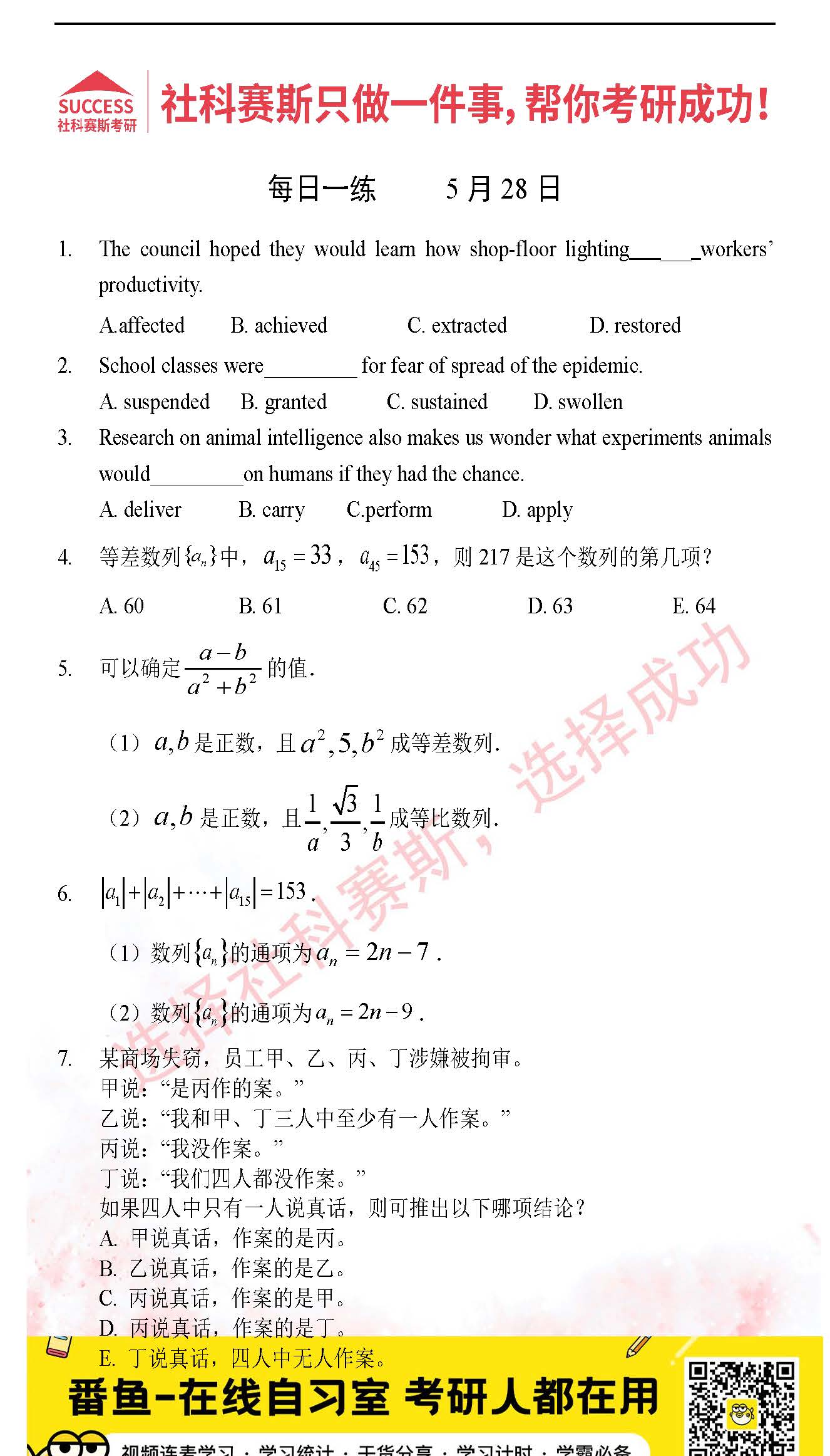 以上就是社科賽斯MBA備考網小編為大家整理2022管理類聯考5月28日每日一練及答案的全部內容,希望各位考生堅持利用起來,更多每日一練內容請持續關注MBA備考網管理類聯考每日一練。