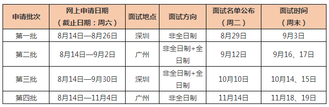 *網上申請時間及面試時間有可能隨招生進程有所變動,最終安排以我院面試前公布的通知為準,請各位申請人留意我院招生信息最新動態。