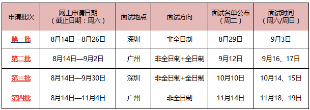* 網上申請時間及面試時間有可能隨招生進程有所變動,最終安排以中山大學管理學院面試前公布的通知為準,請各位申請人留意中山大學管理學院招生信息最新動態。