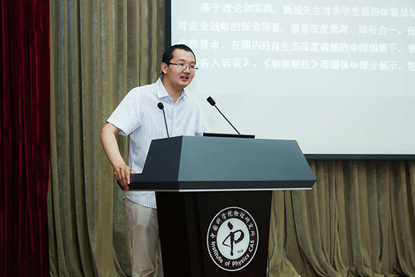 應(yīng)中國(guó)科學(xué)院物理研究所邀請(qǐng),北京社科賽斯集團(tuán)董事長(zhǎng)、總裁甄誠(chéng)先生于2017年5月18日下午在凝聚園M234國(guó)際報(bào)告廳為中科院師生帶來(lái)了“職場(chǎng)制勝之道”專場(chǎng)報(bào)告會(huì),這次報(bào)告也是物理所明理時(shí)空論壇第87期暨人文系列講座第23期。