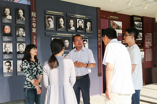 王皖燕副主任引導(dǎo)甄誠(chéng)先生參觀物理所“院士墻”
