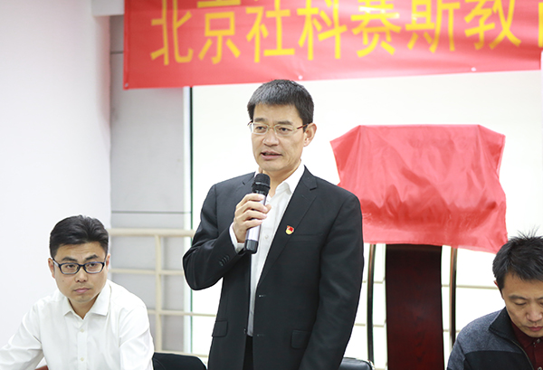 海淀街道工委組織部部長侯永卿和社科賽斯董事長甄誠共同為社科賽斯黨支部揭牌。