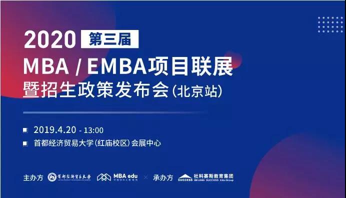 4月20日,將攜手首都經(jīng)濟(jì)貿(mào)易大學(xué)MBA教育中心,聯(lián)合全國(guó)30所商學(xué)院主辦第三屆MBA教育展暨2020招生政策發(fā)布會(huì)(北京站),屆時(shí)各優(yōu)秀商學(xué)院MBA招生辦主任親臨現(xiàn)場(chǎng),為廣大考生提供真實(shí)、實(shí)用的報(bào)考新政策,3小時(shí)揭開(kāi)全國(guó)知名商學(xué)院MBA項(xiàng)目“神秘面紗”。