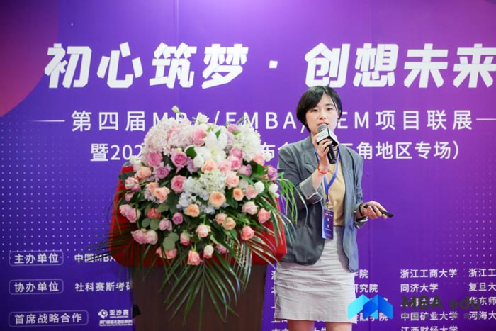 浙江工業(yè)大學(xué)MBA中心招生主管陳鴿老師圍繞院校發(fā)展概況、學(xué)生活動(dòng)、師資力量、國際項(xiàng)目等內(nèi)容進(jìn)行詳細(xì)解讀。她表示,浙工大MBA以培養(yǎng)“東方智慧、國際視野、創(chuàng)新思維、社會(huì)責(zé)任,知行合一的商界精英”為目標(biāo),進(jìn)行培養(yǎng)方案升級(jí),協(xié)同培養(yǎng),依托大數(shù)據(jù)智能化,推動(dòng)中小企業(yè)實(shí)現(xiàn)成長,體現(xiàn)制造業(yè)領(lǐng)袖特色,其創(chuàng)業(yè)管理MBA尤為特色方向。