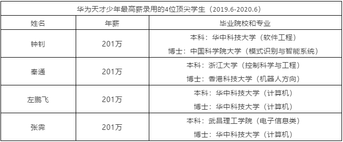 華為從去年開始這項計劃,目前全球只有4人拿到天才少年的最高年薪。這些天才無一例外,都是博士畢業(yè)。