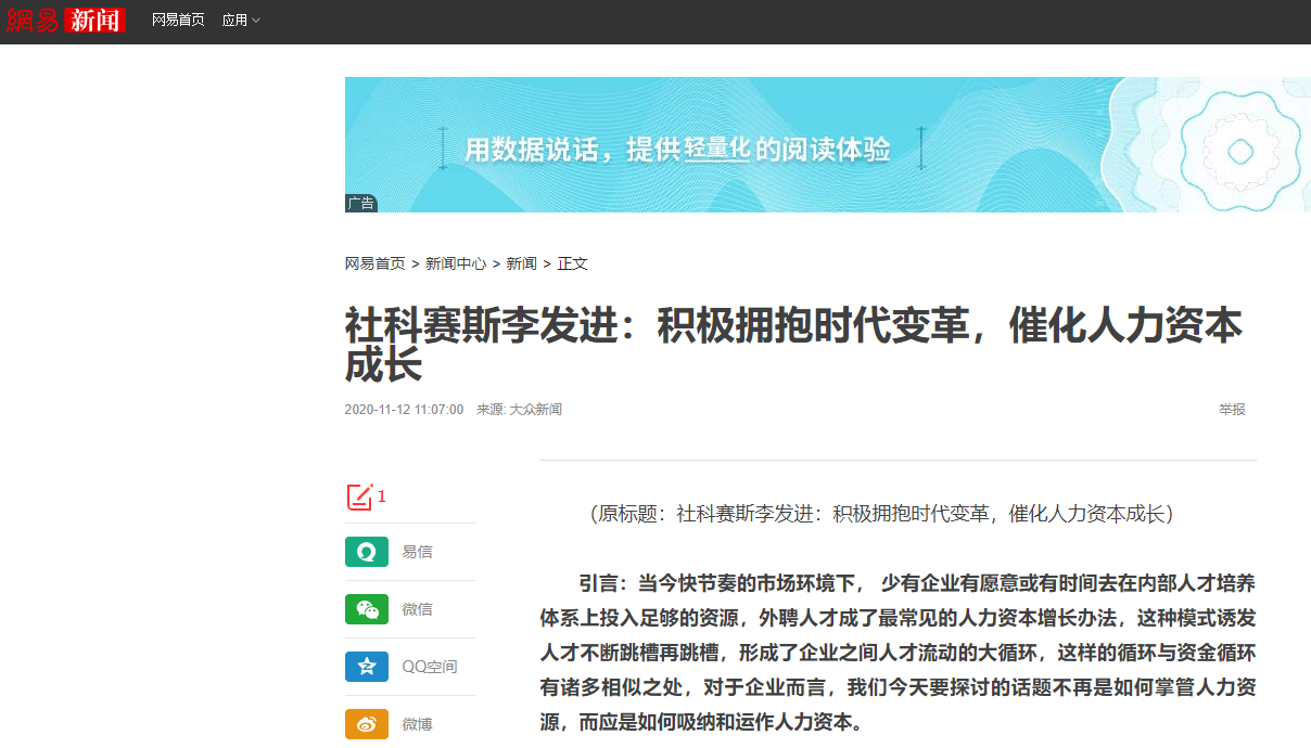 李發進認為:社科賽斯的業績能在疫情期間做到激流勇進,主要來自兩個“以人為本”:第一個“以人為本”是公司注重人力資本,意識到“人才是公司的一切”,要培養和留住人才;第二個“以人為本”是社科賽斯“一切以幫助學員考研成功”,以人文關懷為出發點,實現學員自我價值提升的考研培訓輔導系統。