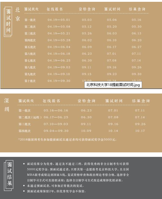 附:北科2018年MBA提前面試時(shí)間安排表