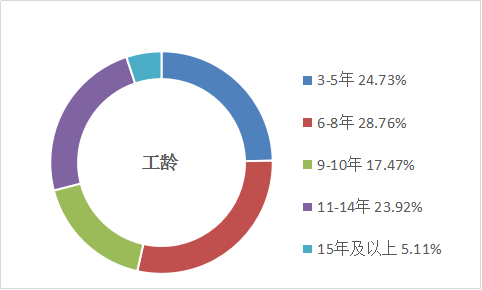 平均年齡:32歲;年齡范圍:24-45歲;平均工齡:8.5年;男女比例:1.4:1