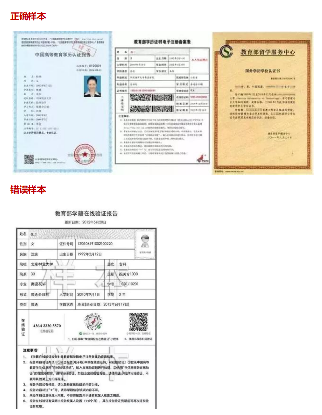2.申請者根據個人的實際學歷情況需提供的正確材料是《教育部學歷證書電子注冊備案表》、《中國高等教育學歷認證報告》、《國外學歷學位認證書》三項中的一項,而非《教育部學籍在線驗證報告》