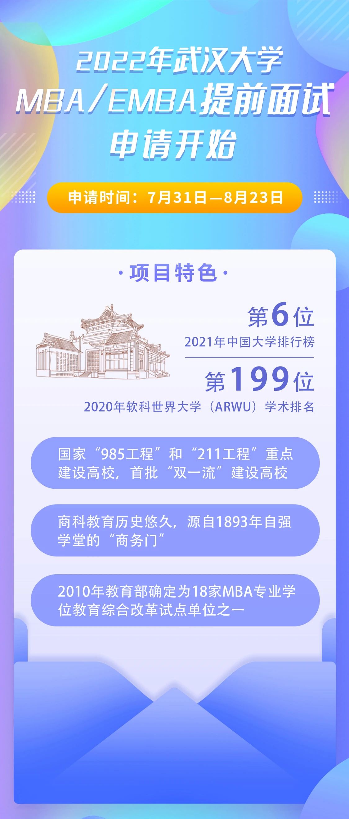 原文標(biāo)題:提面報名 | 2022年武漢大學(xué)工商管理碩士(MBA、EMBA)提前面試申請開始!