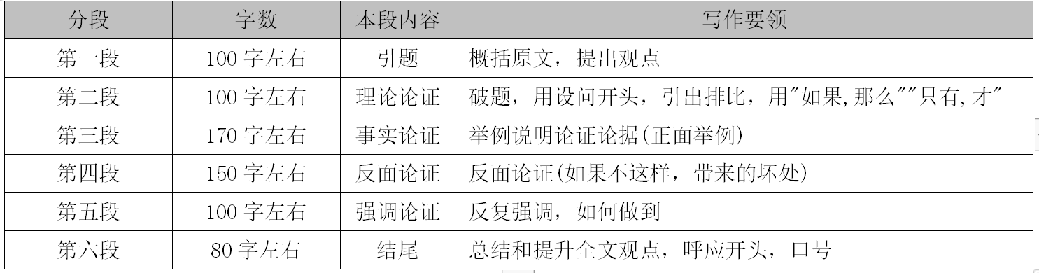 經典段落分布:虎頭豹尾豬肚子(起要美麗,重要浩蕩,結要響亮)