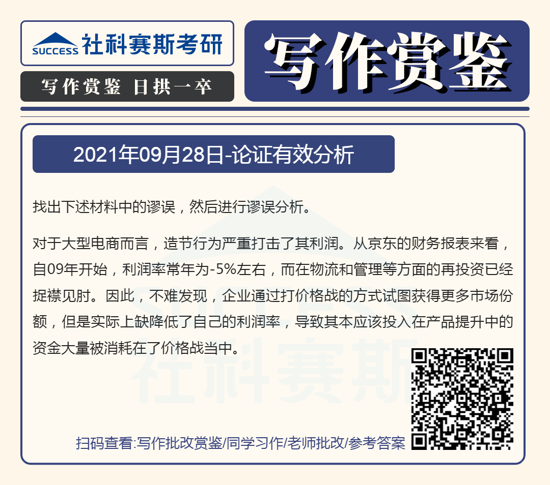 以上就是“2022MBA寫作:2022MBA聯考寫作批改賞鑒及參考答案(9月28日)”的全部內容,更多寫作精選習題,請持續關注社科賽斯MBA備考網!