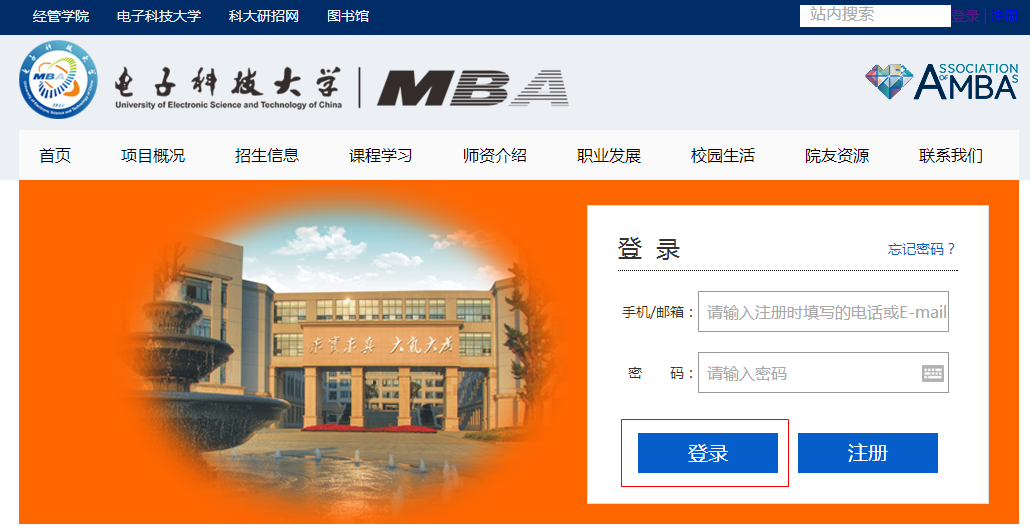 第一步:登錄我校MBA招生系統(tǒng)(http://www.mba.uestc.edu.cn/login.jhtml)