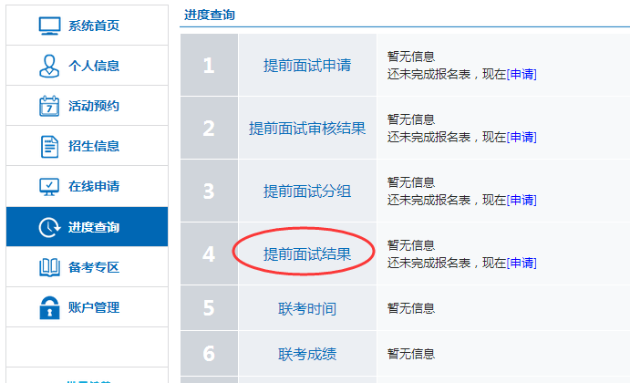 第二步:點(diǎn)擊“進(jìn)度查詢”可查詢面試結(jié)果