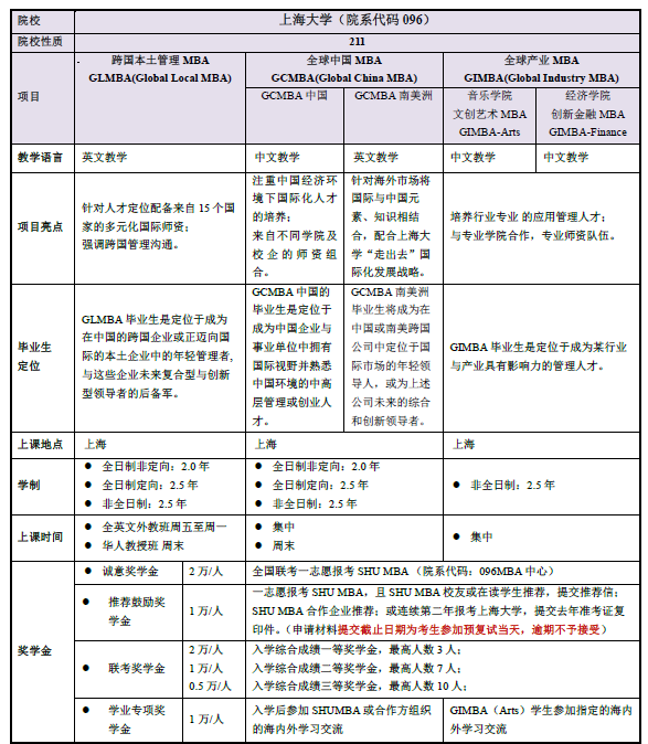 導(dǎo)讀:上海大學(xué)于2003年獲批準(zhǔn)成為全國(guó)第五、六批MBA培養(yǎng)院校;并于2004年9月成立上海大學(xué)MBA教育管理中心(管理教育研究院)(簡(jiǎn)稱“SHU MBA”),負(fù)責(zé)上海大學(xué)的MBA教育的官方部門。