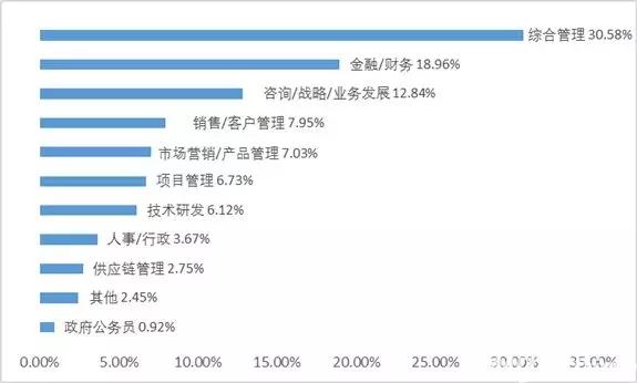 平均管理人數(shù):36人因為不同的行業(yè)和職能特點,還有7%的2018級清華MBA項目(在職)學(xué)生沒有下屬人員。
