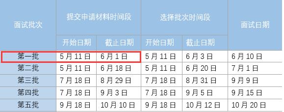 4.根據(jù)歷年情況,每個批次都可能出現(xiàn)下列情況:在提交材料或者選擇批次的截止日期前,面試名額已滿。因此,提醒考生提前計劃,越早提交材料,選到目標(biāo)批次的可能性越大。