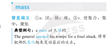 導讀:本期單詞 mass (n 團;塊;堆; v 使集合,集中;聚集 ),配以音頻,全方位學習