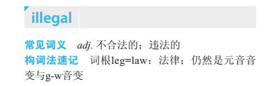 導讀:本期單詞illegal (adj 不合法的;違法的),配以音頻,全方位學習