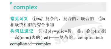 導讀:本期單詞complex ( adj 復雜的,復合的,聯(lián)合的;n 相聯(lián)或相似的綜合事物)