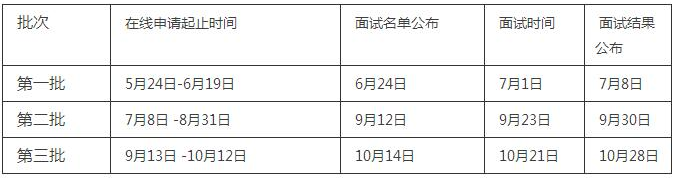 批次在線申請起止時間面試名單公布面試時間面試結果公布