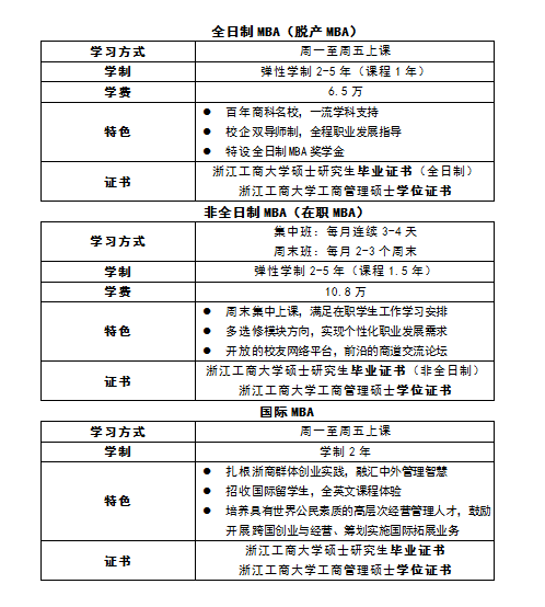 以上就是“2020年浙江工商大學MBA(工商管理)招生簡章”的全部內容!祝您考研成功!