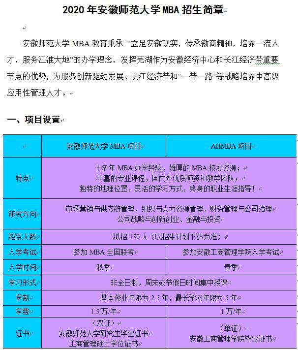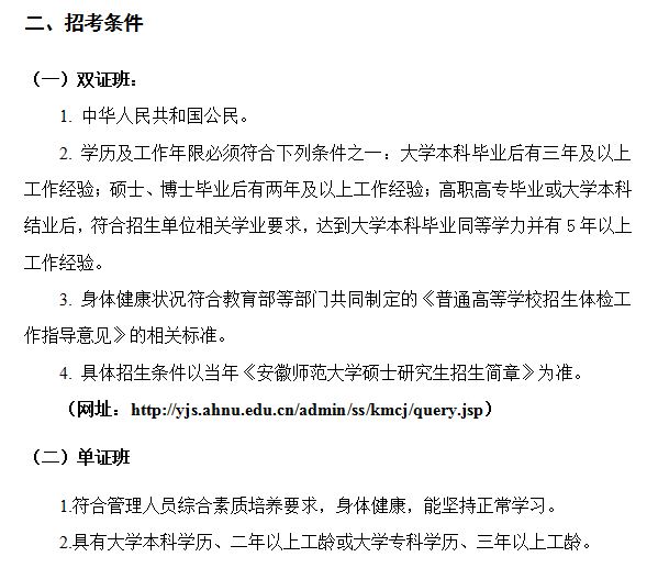 以上就是“2020年安徽師范大學MBA(工商管理)招生簡章”的全部內(nèi)容!祝您考研成功!